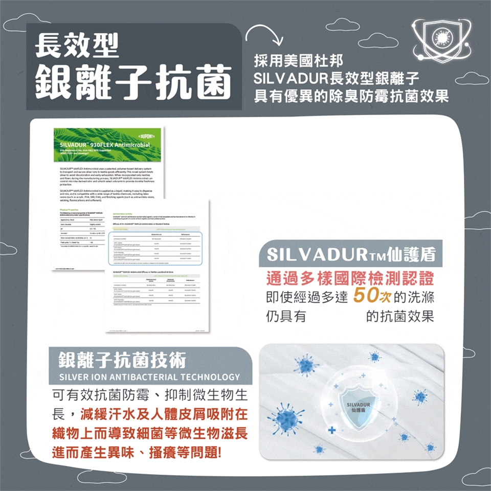 ✓ 新增了銀離子防霉防蟎、有效達到除臭效果