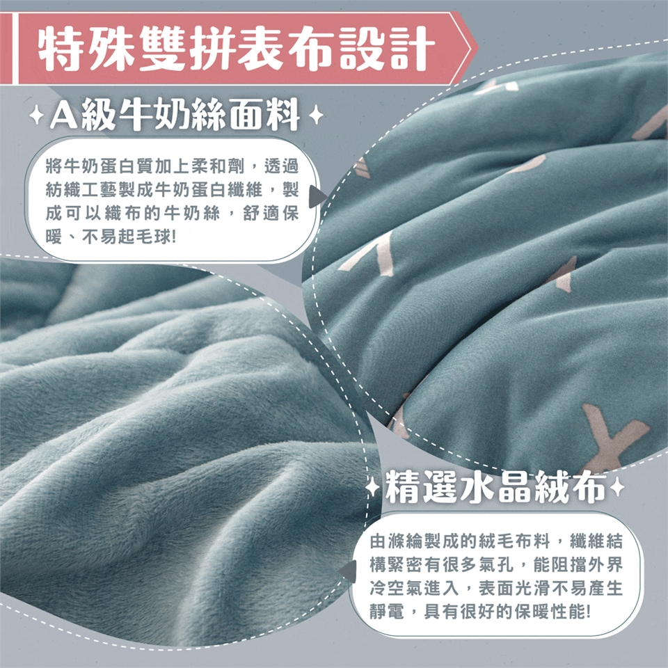 ✓ 表布全面升級! 牛奶絲 x 水晶絨,雙拼布料、蓄熱效果高