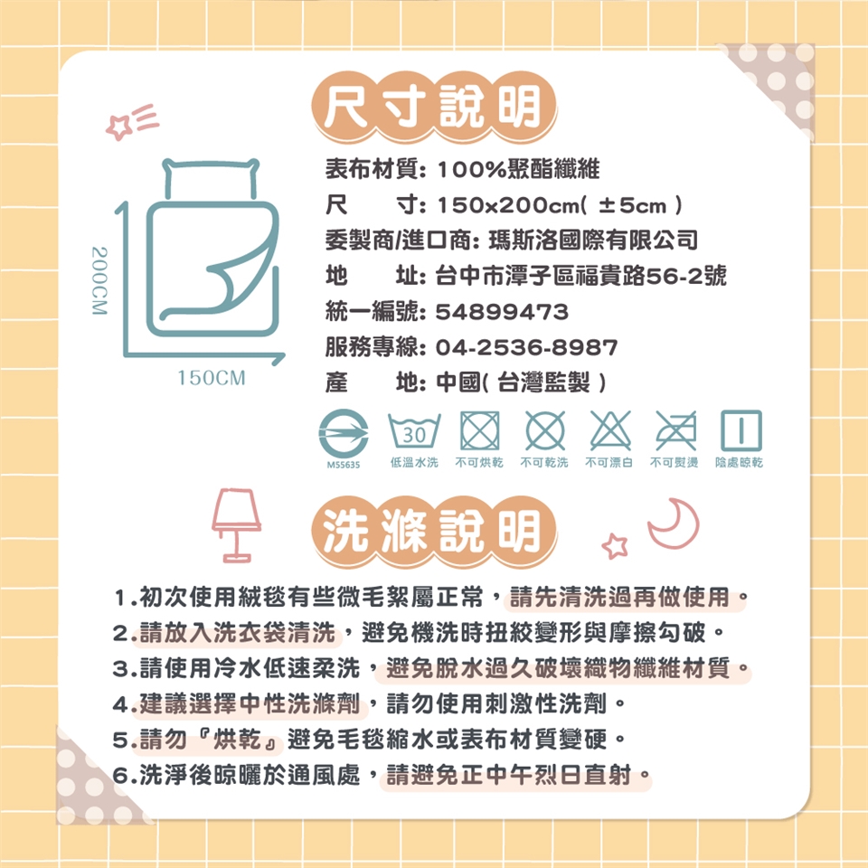 ※注意事項:產品需低溫水洗、陰處晾乾。不可烘乾、不可乾洗、不可漂白、不可熨燙