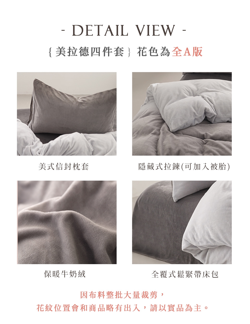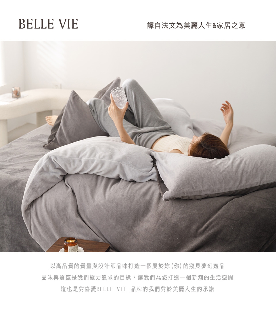 BELLE VIE 美拉德風格暈染 抗靜電牛奶絨 雙人加大床包被套四件組【靜謐灰】即瞬保暖 熱感蓄溫