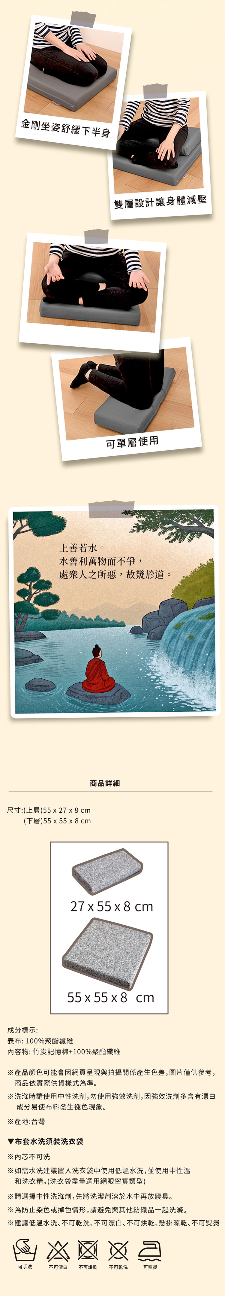 ※如需水洗建議置入洗衣袋中使用低溫水洗,並使用中性溫和洗衣精。(洗衣袋盡量選用網眼密實類型)