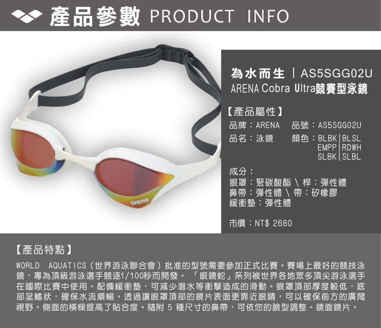 (2)可調節泳鏡鏡帶,根據個人臉型調節確保最佳的密封性能。