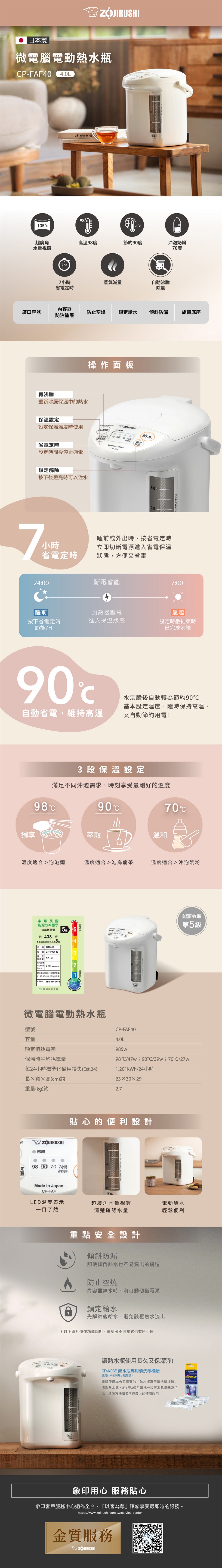 (1)3段階保温設定:高温98℃、節約90℃、沖泡奶粉70℃