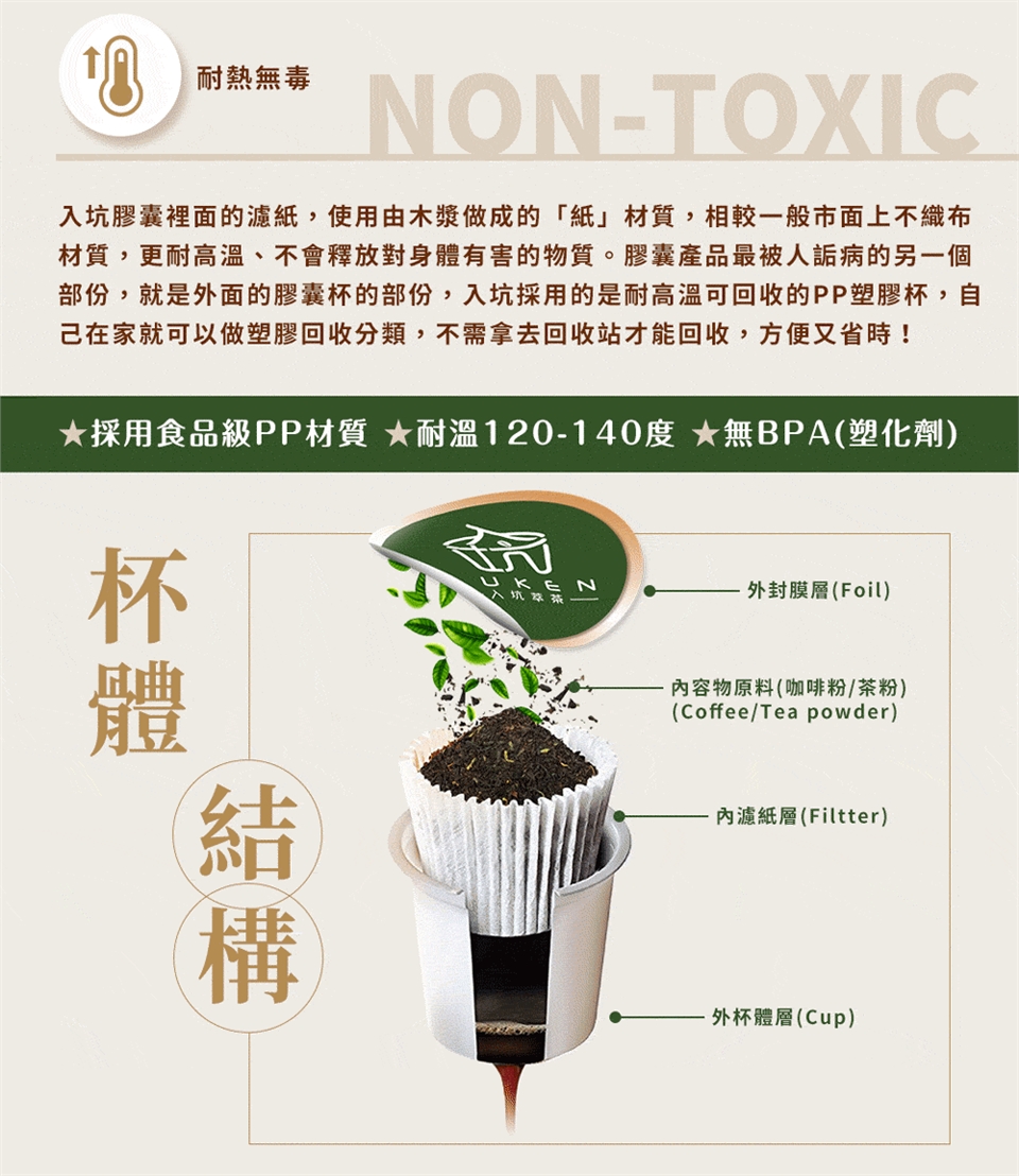 ✔ 外層食品級 PP 杯體(耐熱 120~140°C)