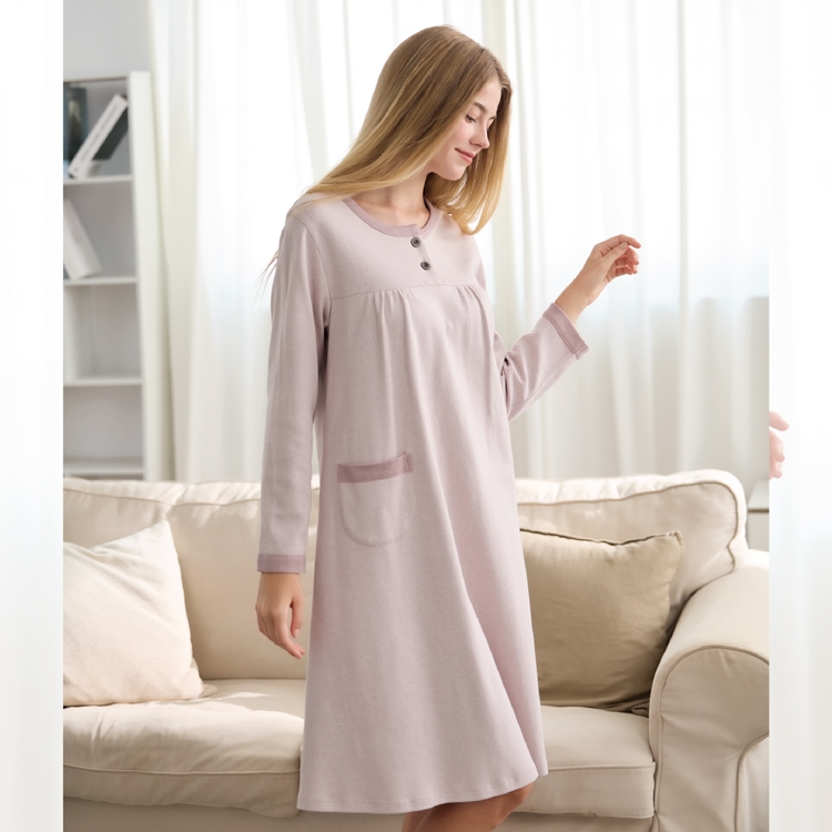 100%棉長袖洋裝睡衣