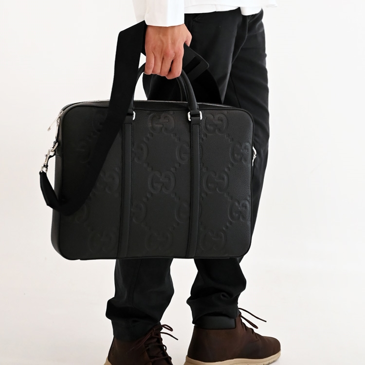 GUCCI 公事包款系列,經典GG LOGO壓花+荔枝皮革材質,質感織布內襯,包款時尚高雅,拉鍊開口/內1拉鍊袋+1貼袋+2卡夾層+1筆電袋供收納,可放A4文件、長夾、摺疊傘等隨身物品,包款簡約時尚,展現經典復古、摩登的雙重時尚感!