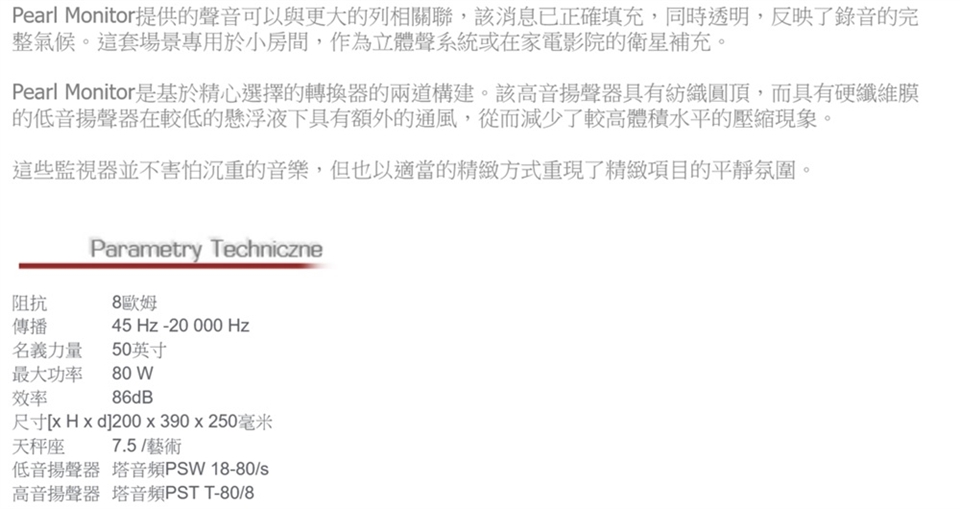 Pylon Audio成立於2011年,總部位在波蘭中西部城市亞羅欽(Jarocin)。這個專事生産喇叭的品牌,2018年正式透過福河音警代理,將産品引進台灣。PylonAudio設計喇叭箱體很有一套,透過專業製成機具舆技術團隊,以各種不同厚度的高密度MDF、刨花板搭配PVC颜料箔形塑出結構紮實、外型簡約、做工精緻的喇叭産品。Pylon Audio的喇叭不僅標榜可以快速大量生産,也可以根據客户需求客製化箱體材質舆貼皮式様,成品品質非常優異,在波蘭是一個别具名氣的箱體設計品牌。更難能可貴的是,Pylon Audio的技術實力還不僅限於箱體的設計,它還有自主開發單體的能力,所以Pylon Audio能掌握喇叭設計的所有重點,在産品開發上有很大的自由度,因此也推出很多價格平實的喇叭,但從這些産品上頭你完全不會嗅到絲毫的廉價感,相反地能因為優秀設計而有令人驚點的表現,無論是聲音效果還是能搭配居家裝潢的洗錬外貌,都能讓預算較為有限的劇院玩家涉獵到適合自己的産品。入門就是一顆精美的珍珠本次評测的是Pylon Audio産品線中Pearl系列,根據他們官網産品線分類,這套「珍珠」屬於入門、