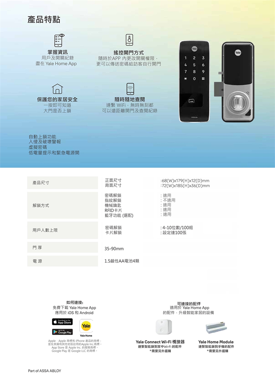 ◆請勿使用由其它製造商生產的,或未經耶魯官方特別推薦之零件組,不在保固範圍內。