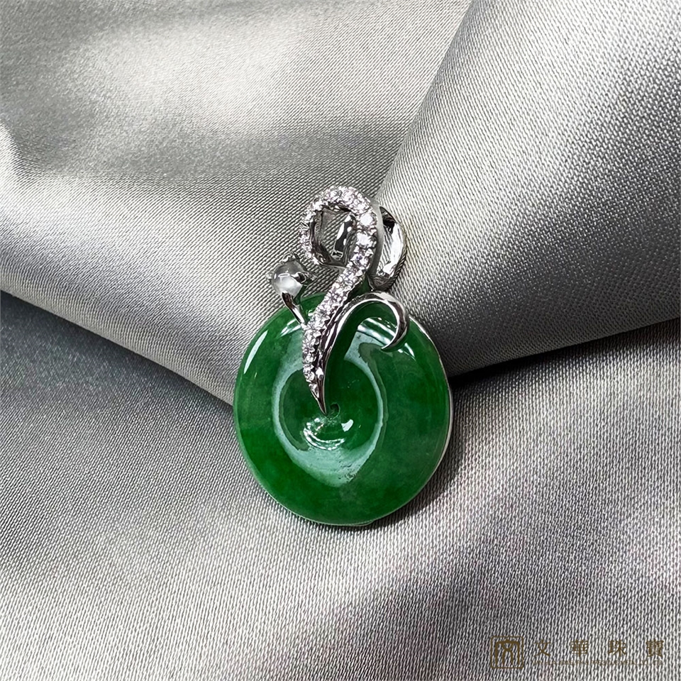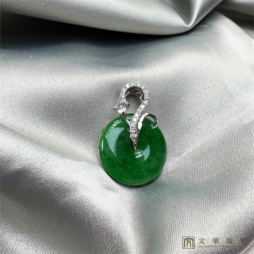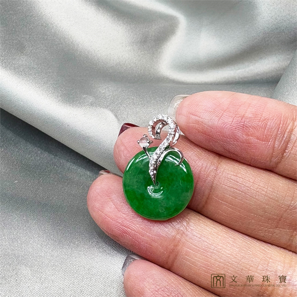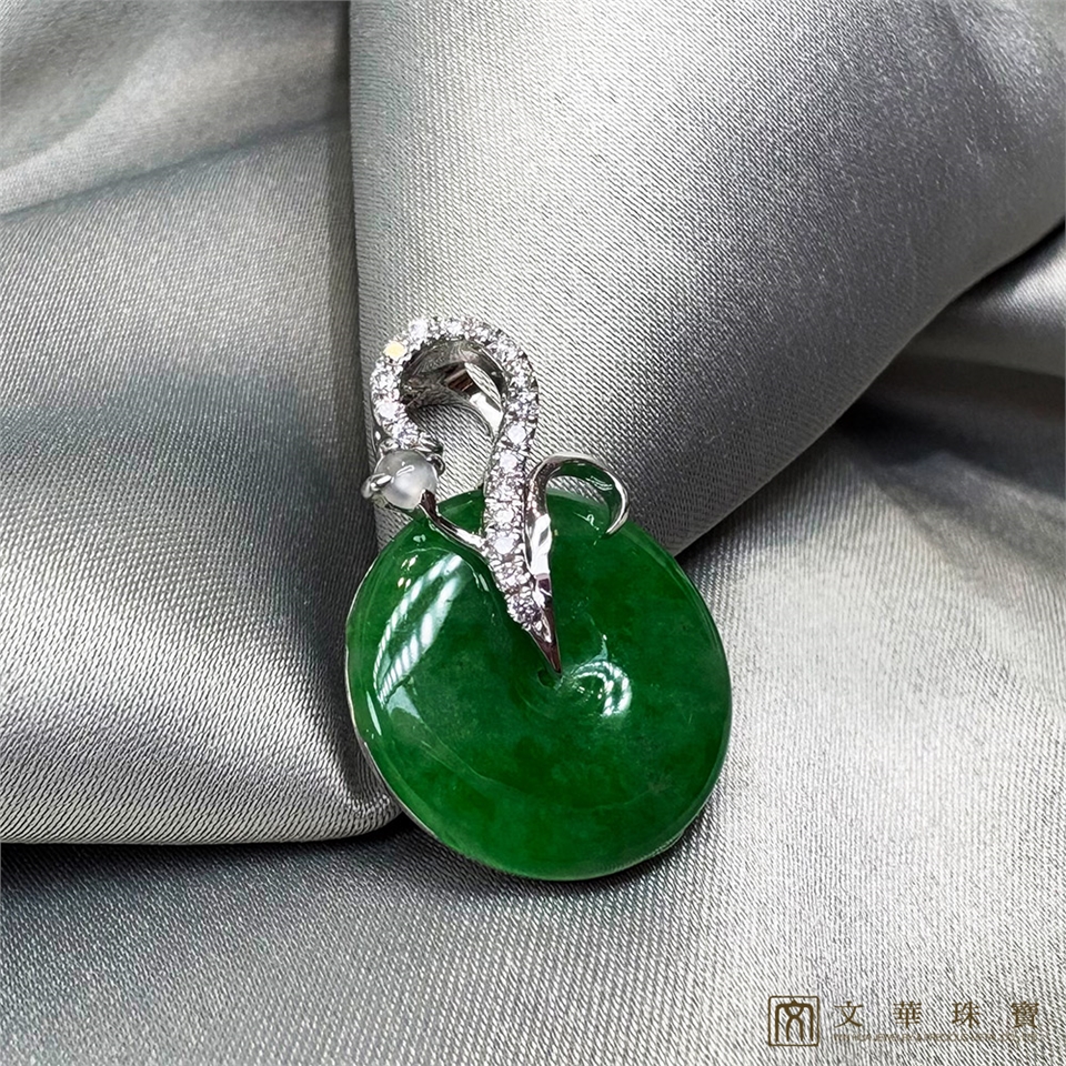 材質: 白K金585/小鑽共0.098ct;白翡蛋面乙枚