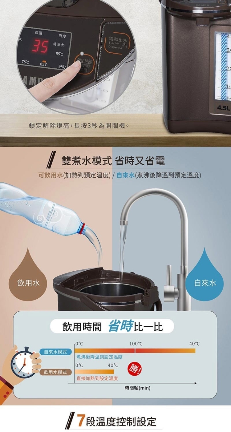 ◆ 雙煮水模式:自來水+可飲用水模式,依據不同水源選擇
