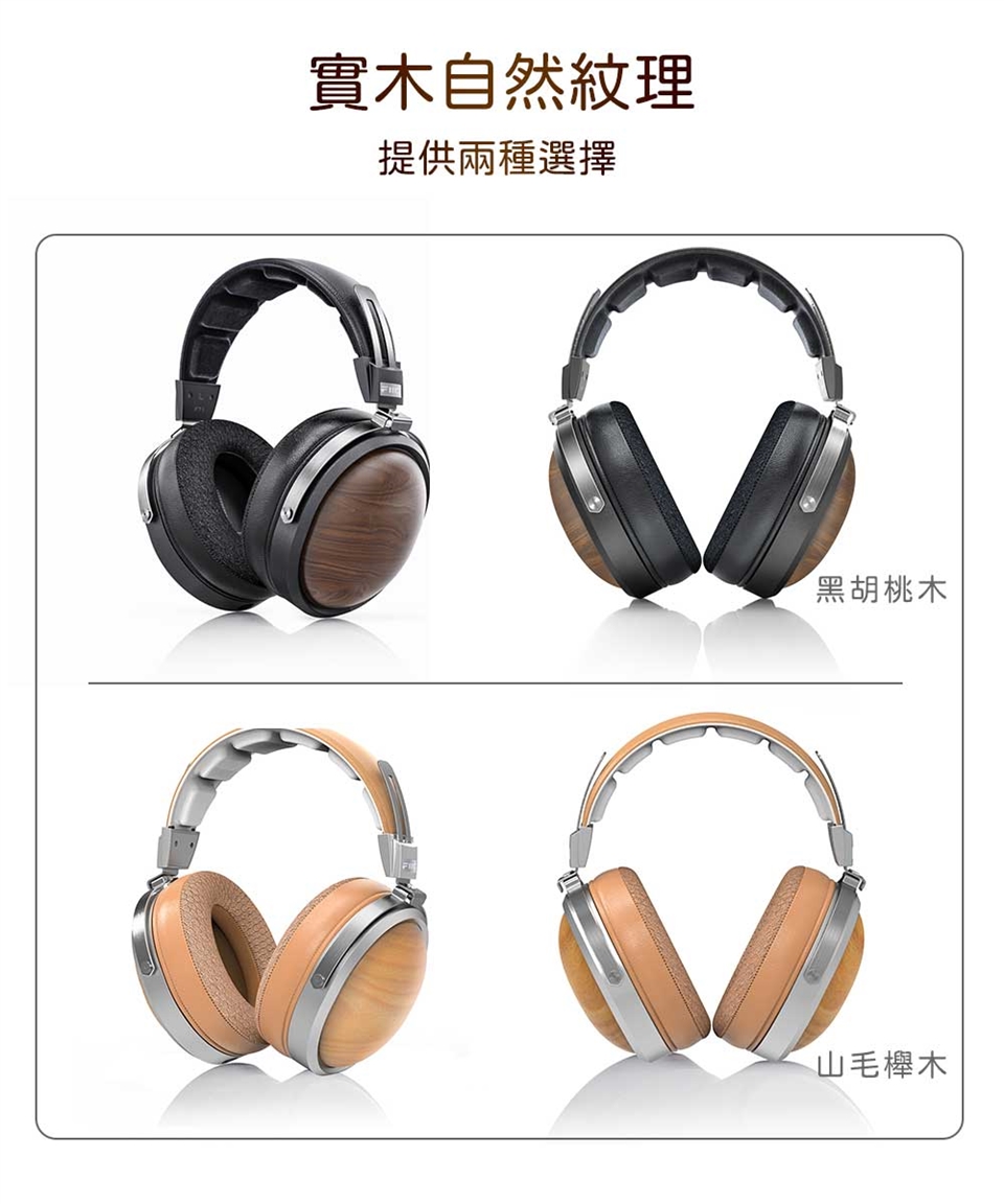 北美FAS級黑胡桃實木、山毛櫸|FAS級北美黑胡桃木、山毛櫸高密度實木材料,有效降低腔體諧振、減少駐波,讓每個木質耳機外殼的紋路都獨一無二。木材中的高級代表,是難得的珍貴木材。