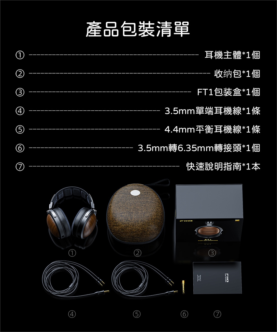 注意事項:1.產品僅包含:耳機*1、收納包*1、4.4mm平衡耳機線*1、3.5mm單端耳機線*1、3.5mm轉6.35mm轉接頭、使用說明書*1。
