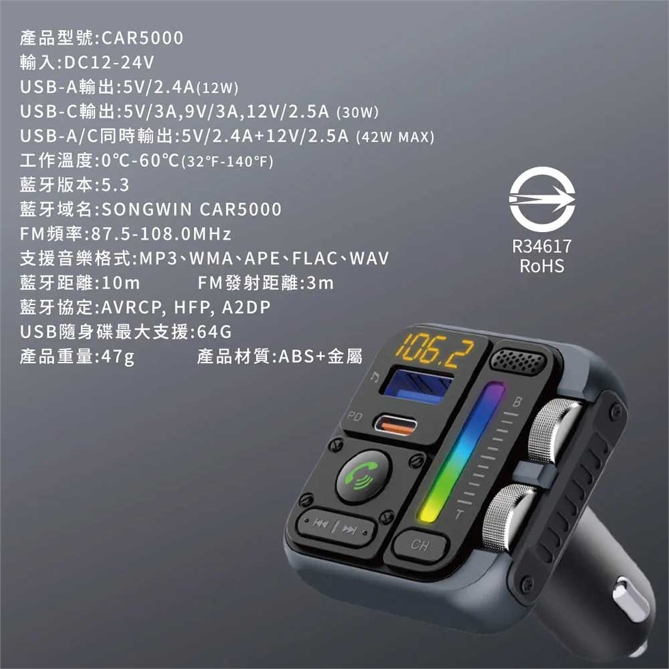 藍牙域名:SONGWIN CAR5000