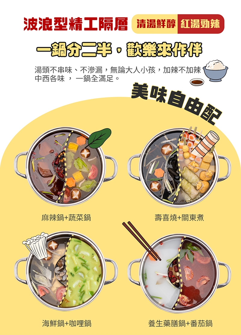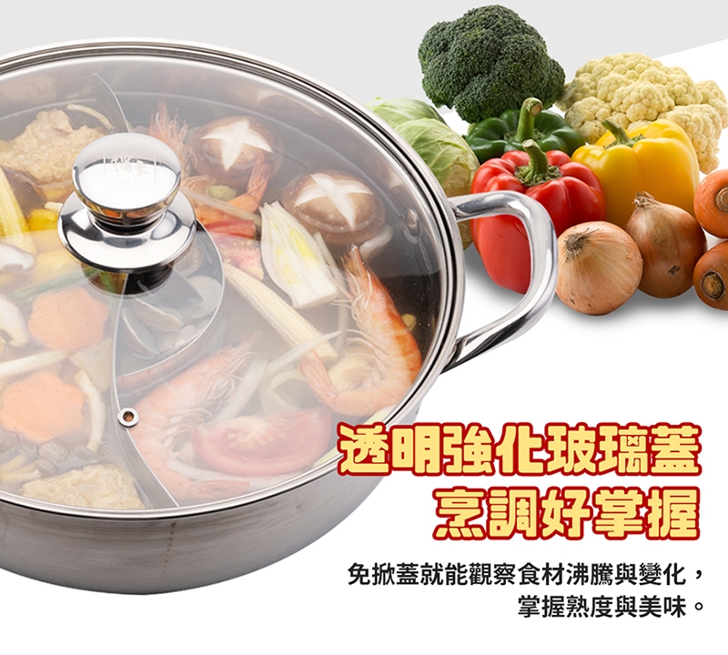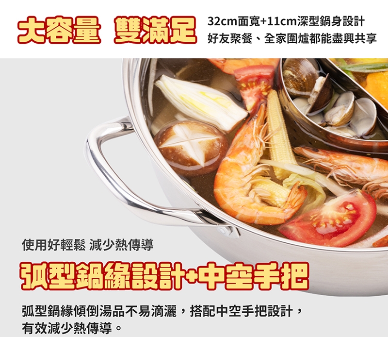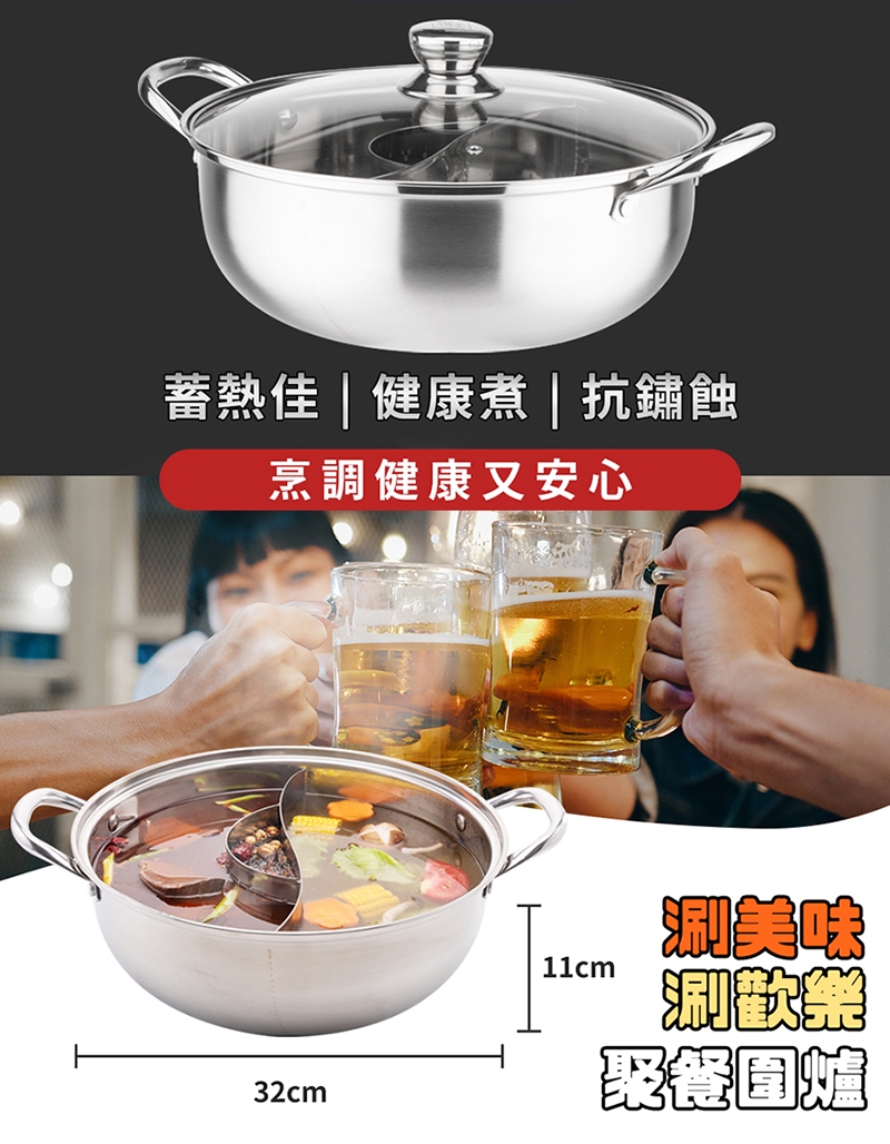 品名:【鍋寶】不鏽鋼鴛鴦火鍋 (含蓋)32cm