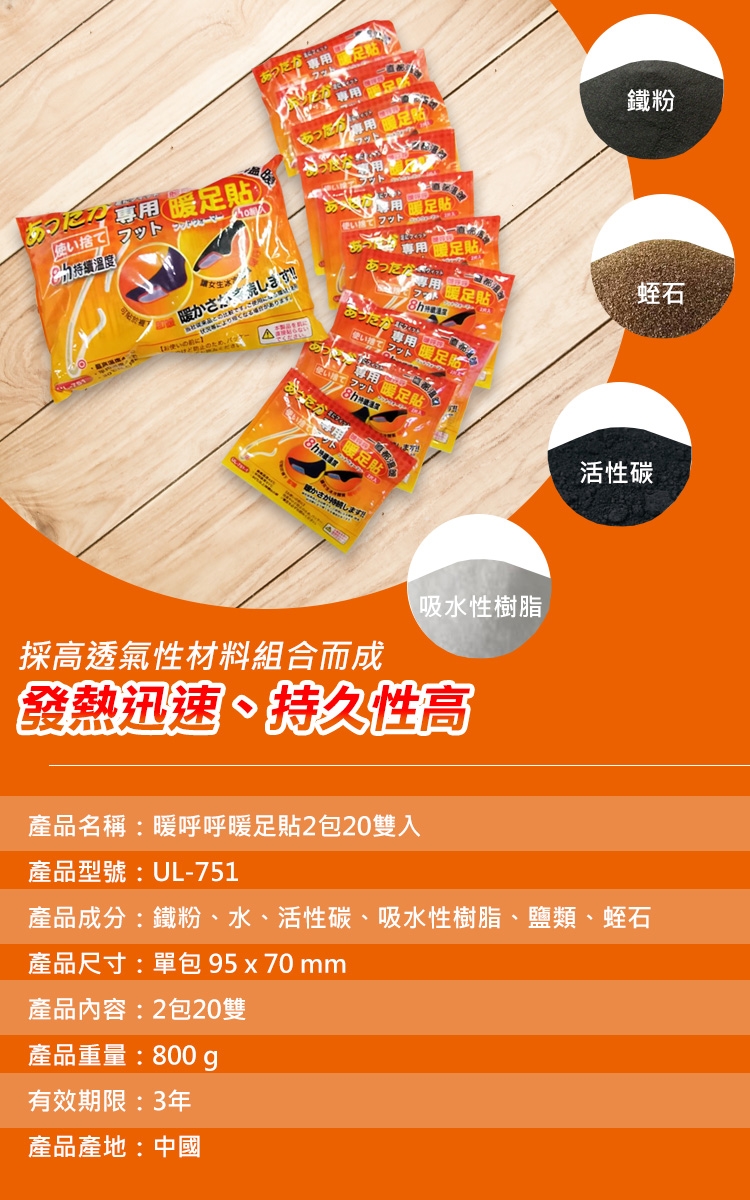 產品成分:鐵粉、水、活性碳、吸水性樹脂、鹽類、蛭石