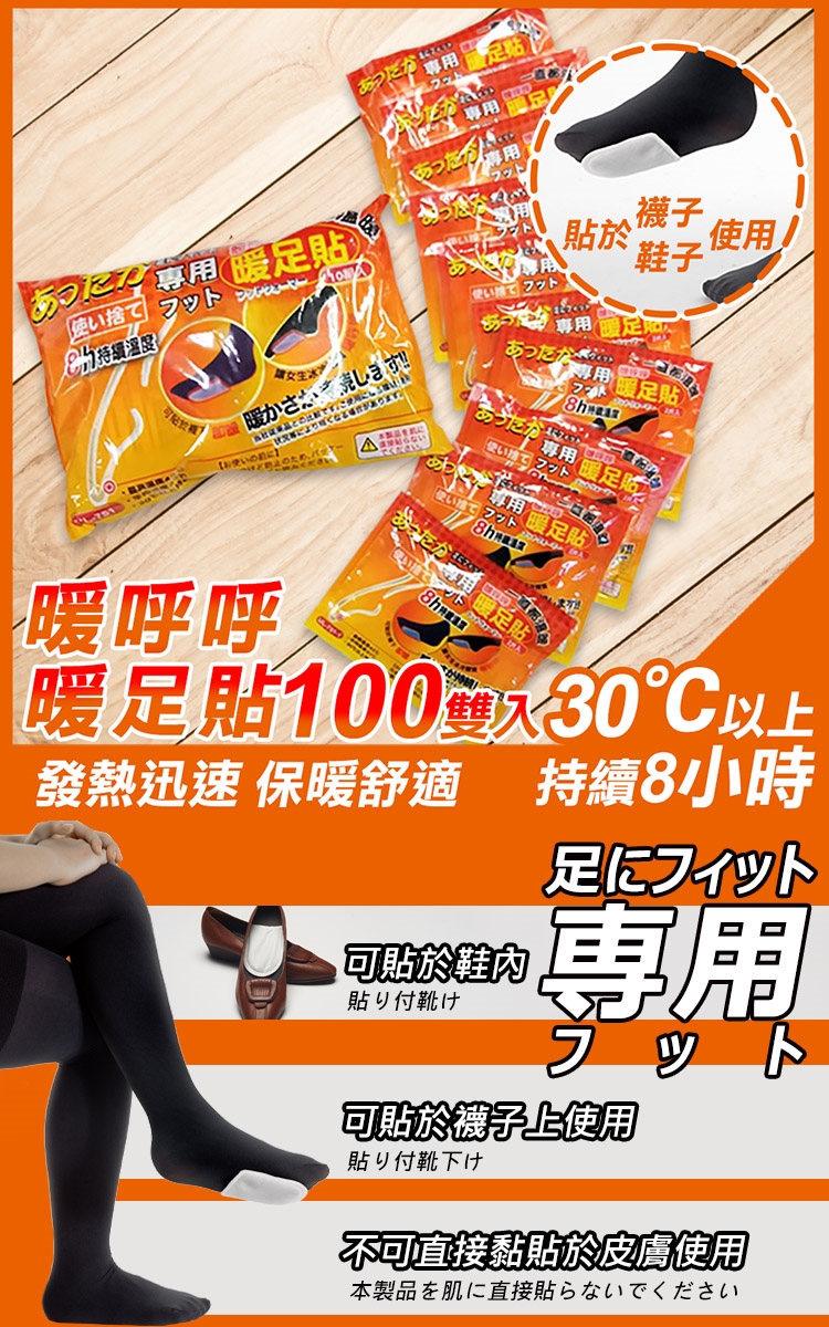 8h貼式暖呼呼暖足貼10包100雙入(UL-751)