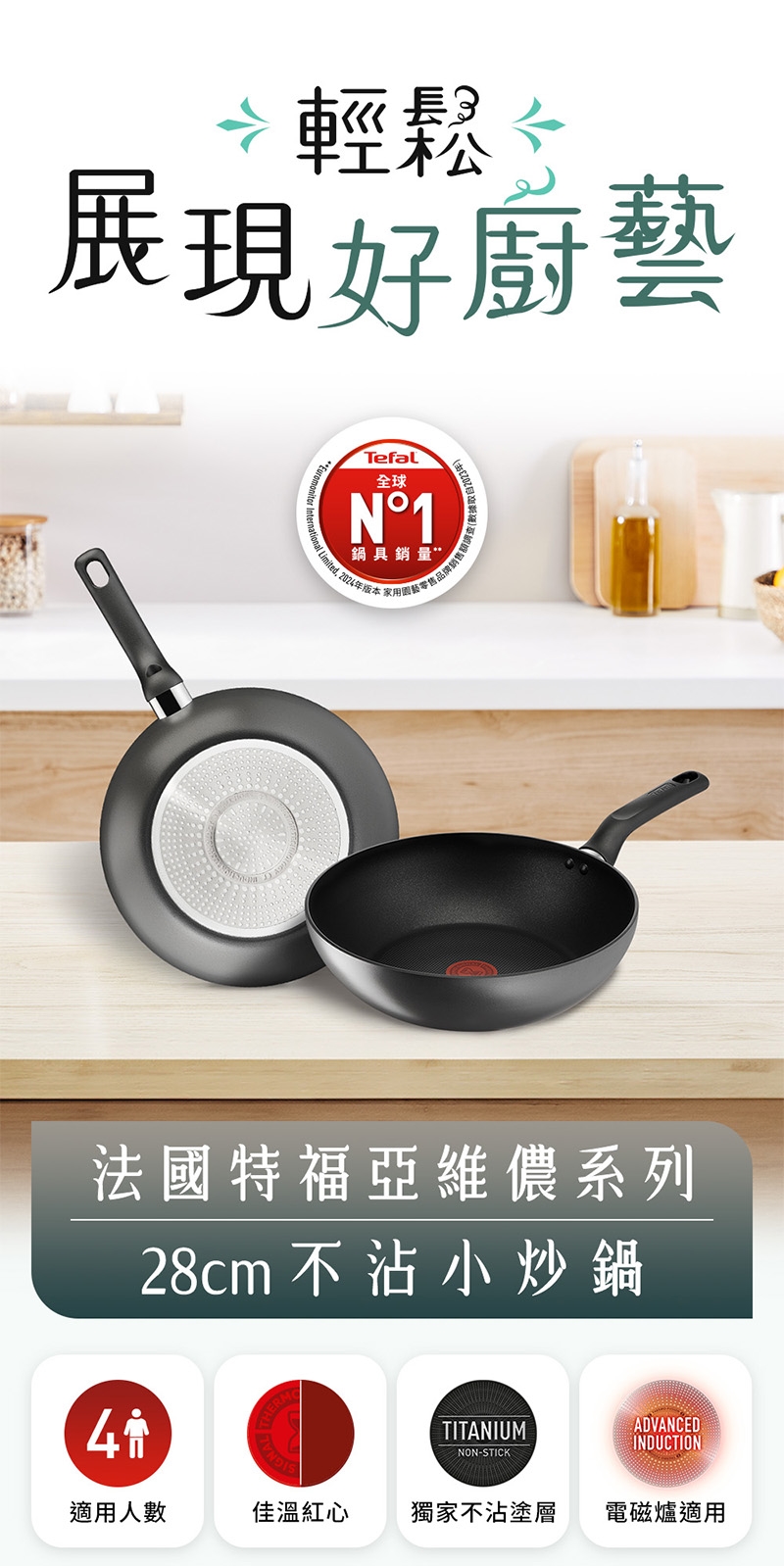 Tefal法國特福 亞維儂系列28CM不沾小炒鍋(適用電磁爐)