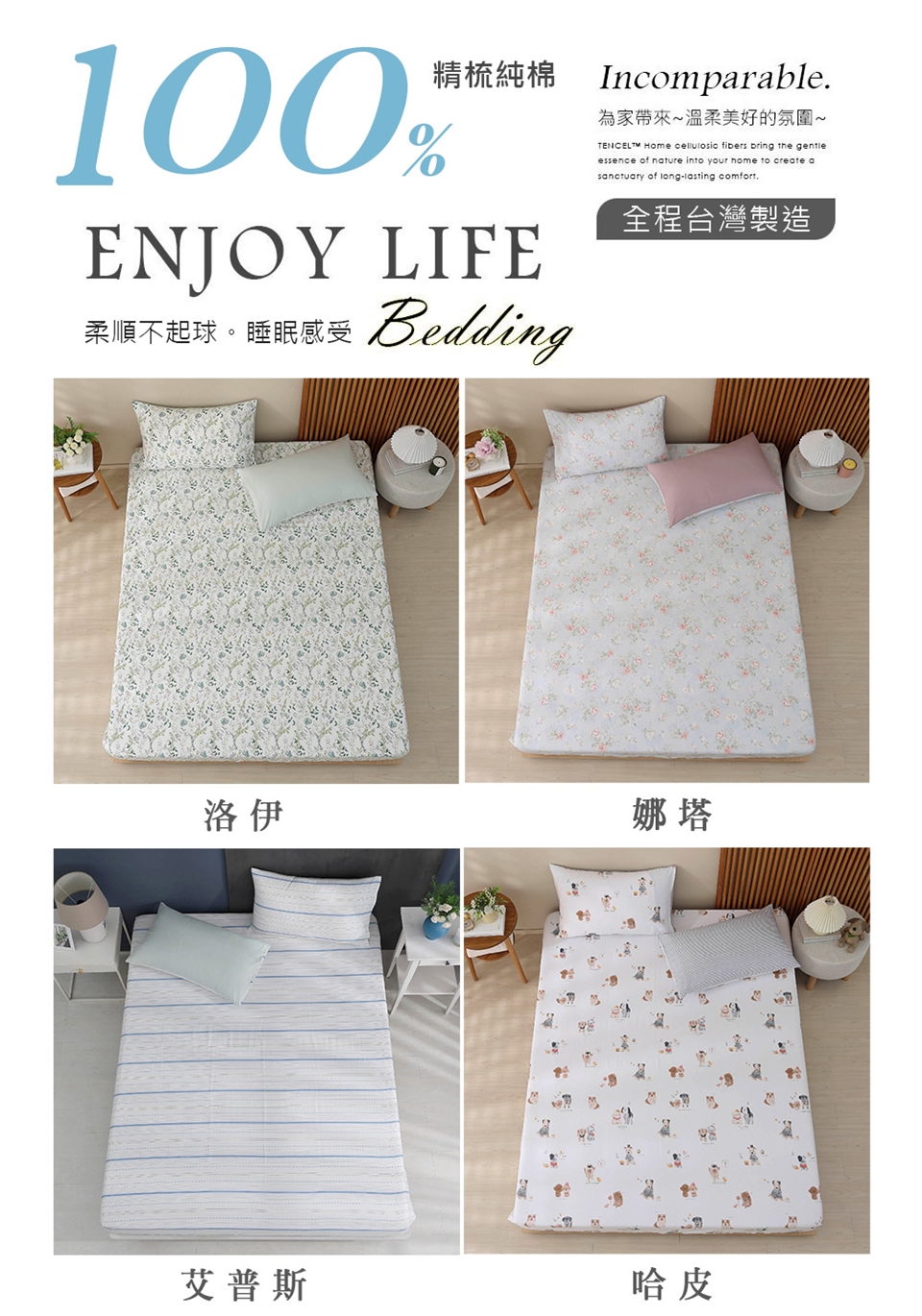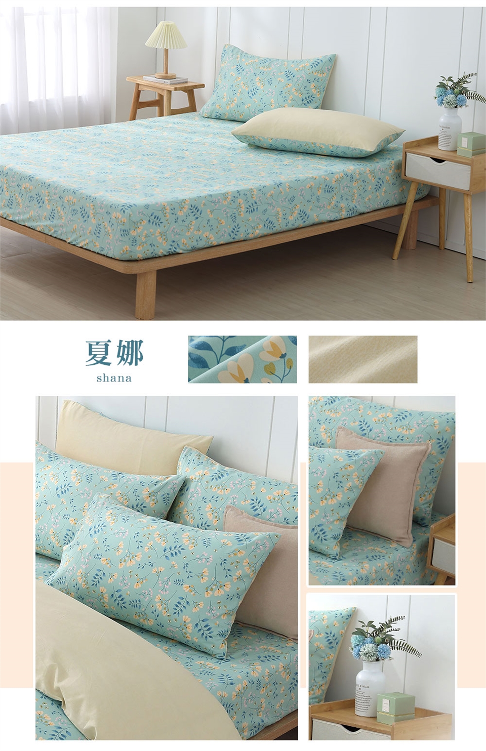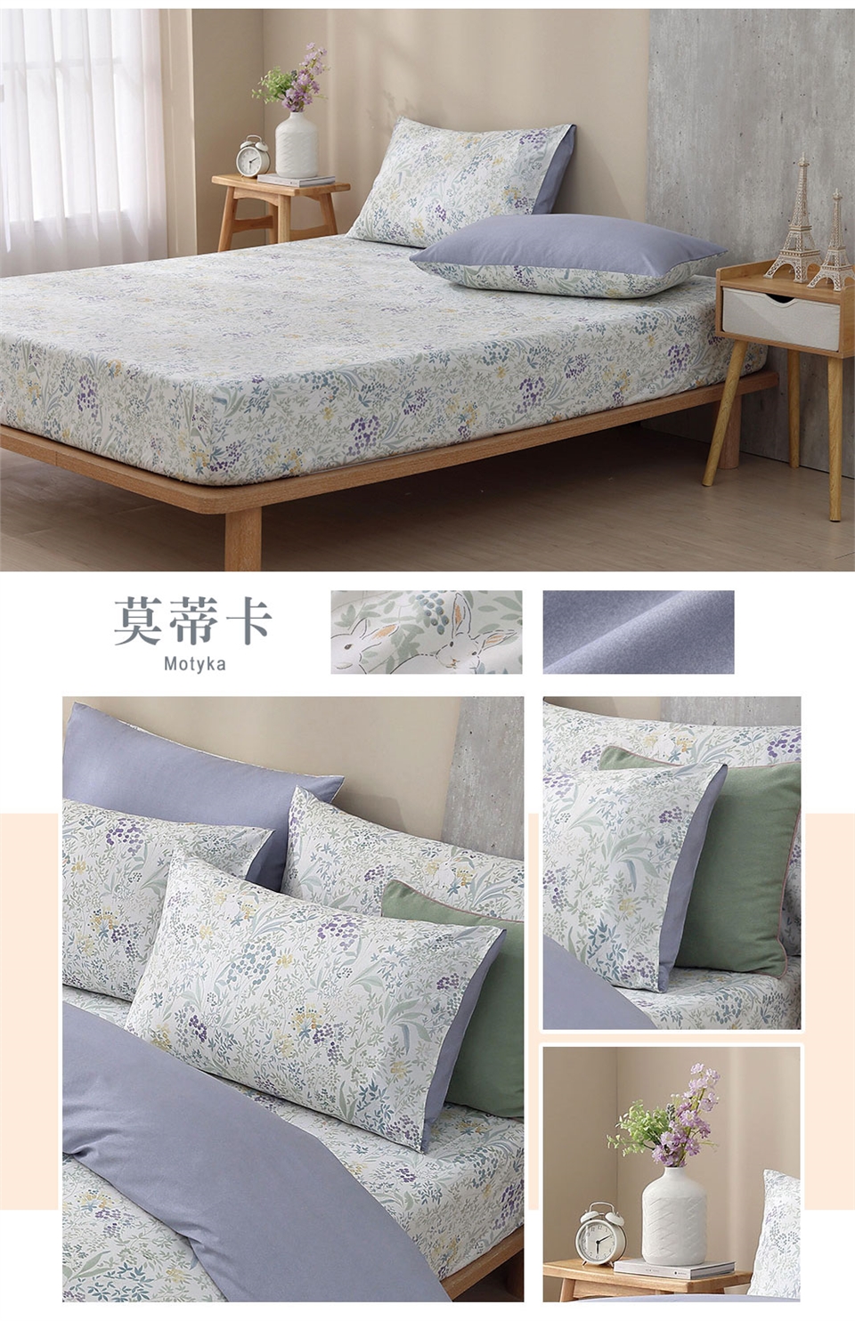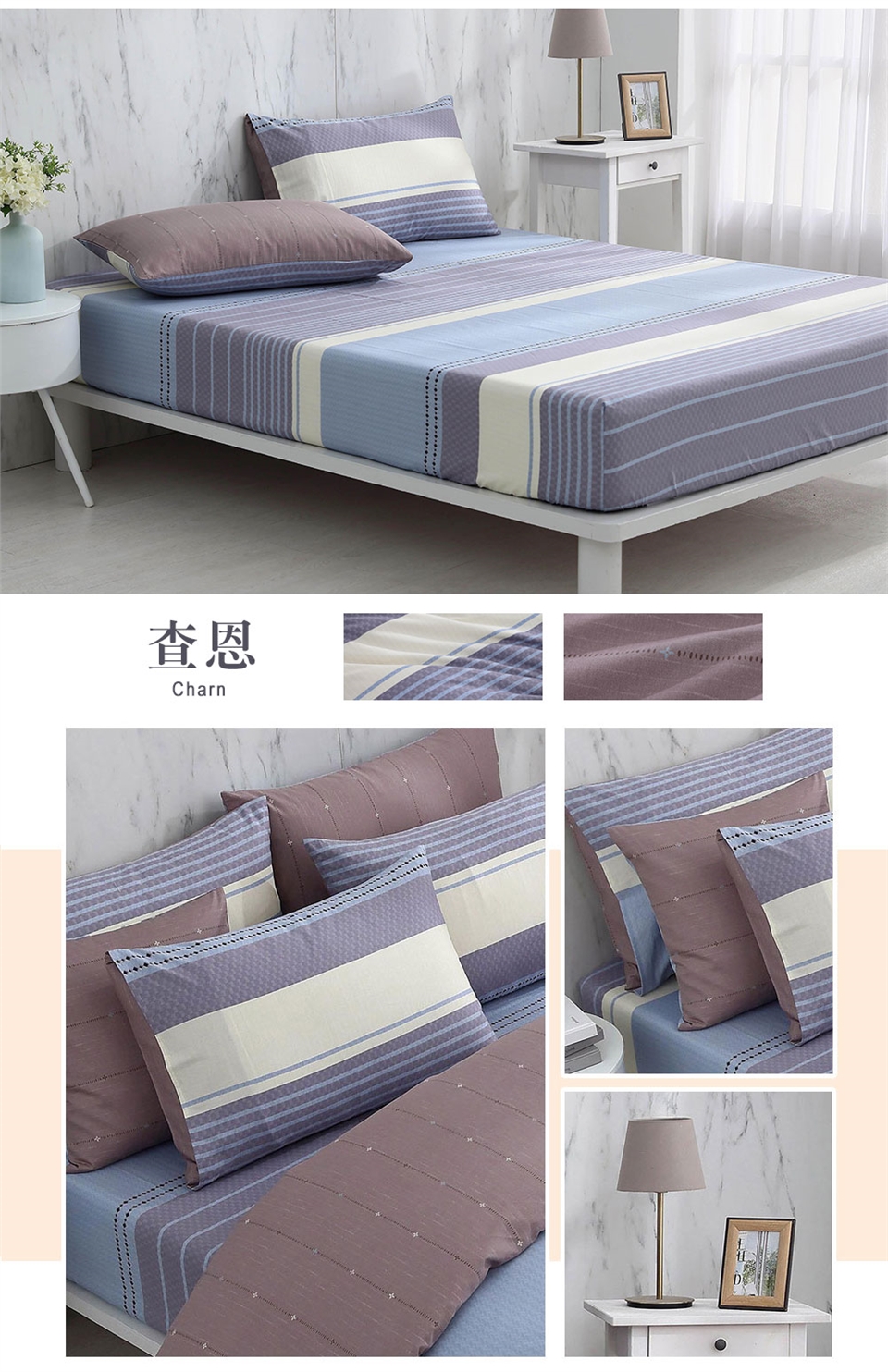 洗滌方式:先將中性洗滌劑倒入洗衣機的水中,水溫不要超過40度C,待洗滌劑完全溶解再放入床包組,注意浸泡時間不要超過10分鐘。