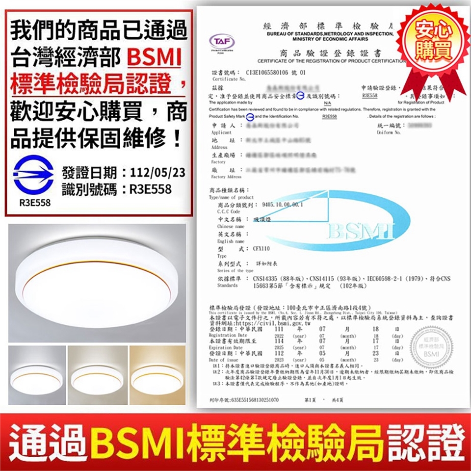 聚美照明產品已通過產品認證購買放心,售後有保障:BSMI認證:R3E558