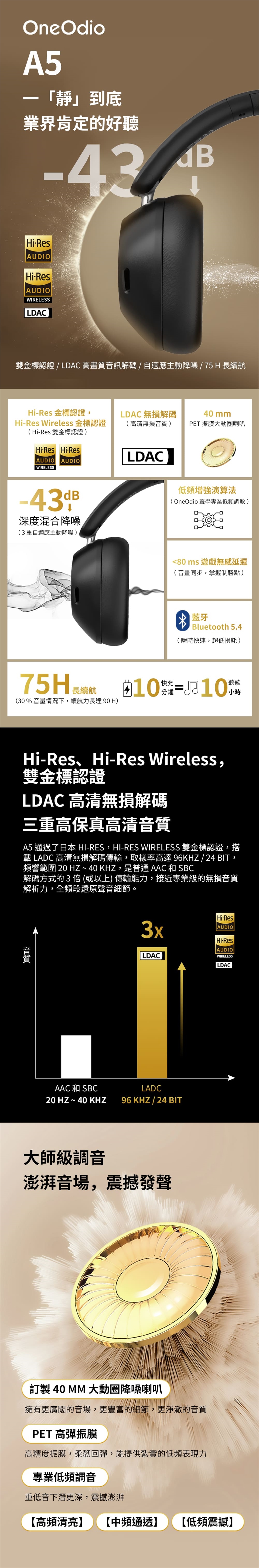 - OneOdio A5 耳罩式降噪藍牙耳機