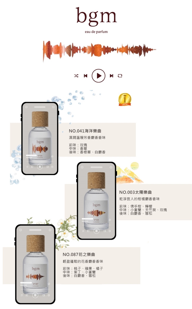 “一直以來以歌手身分活躍的我,為了搭配不同場合的妝容打扮,香水對我而言,就像是電影中不可或缺的背景音樂,因而設計“BGM”香水品牌。