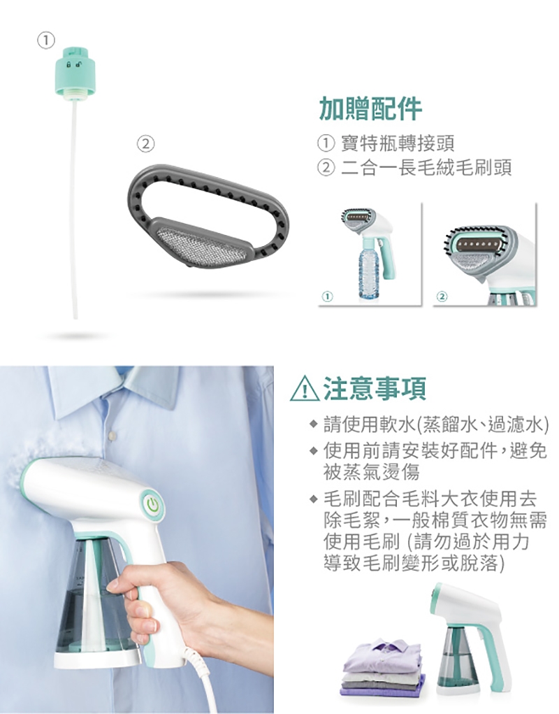 ※ 掛燙機建議使用軟水(蒸餾水或過濾水),以延長產品的使用壽命