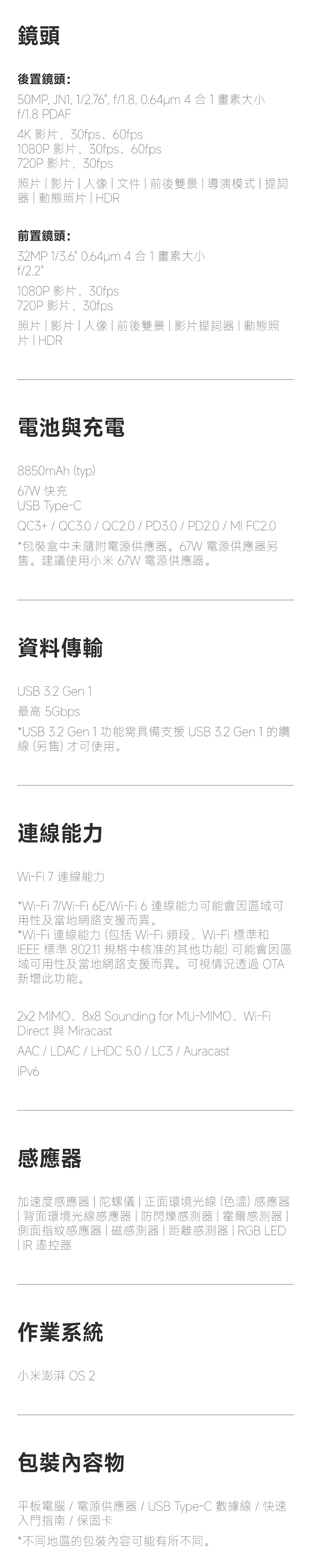 以上規格資料若有任何錯誤,以原廠所公佈資料為準