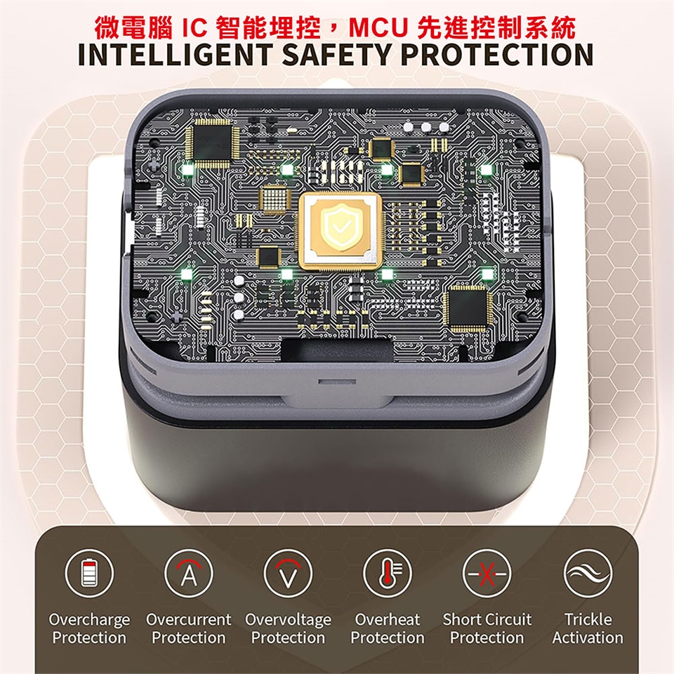 2.獨立插槽充電器,採用先進MCU控制系統,智慧AV、AV斷流充電技術,會自動轉為涓流充電,防止電池過壓、過流、過熱。
