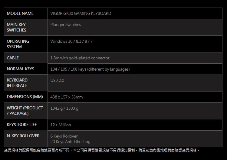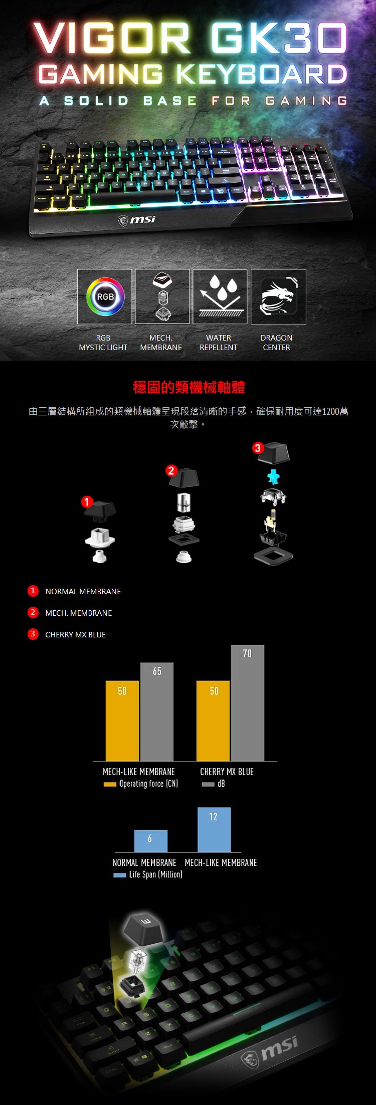MSI 微星|Vigor GK30 類機械電競鍵盤(中文)