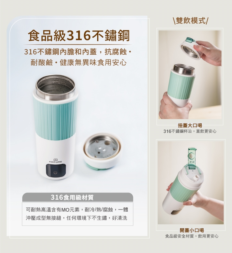 MATURE美萃 雙電壓旅行速熱電熱水杯~外出/旅行暖心必備