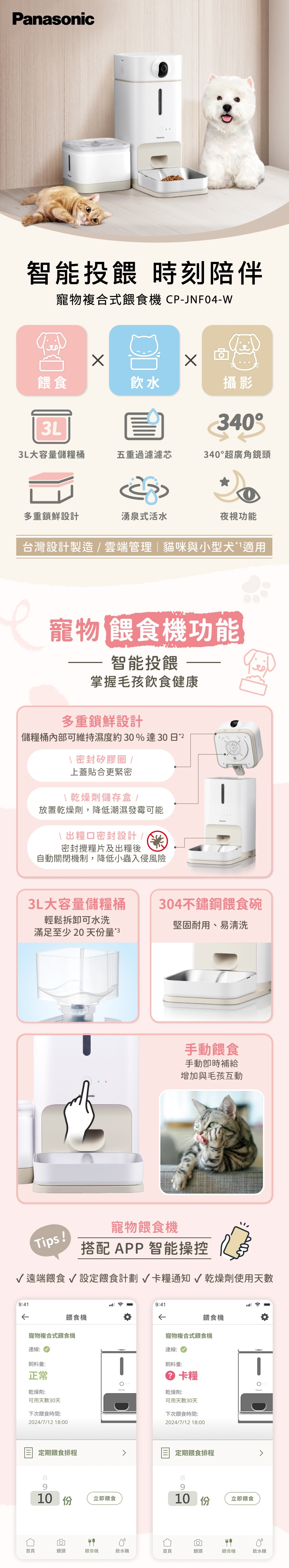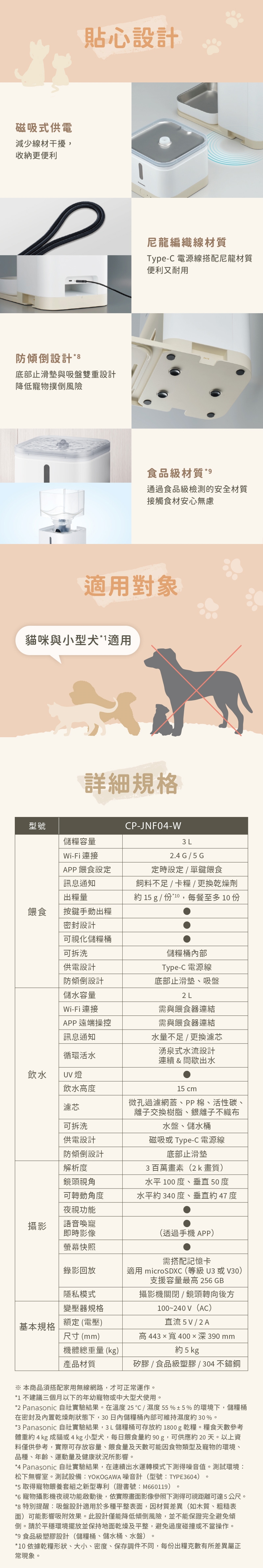 .活動型號:Panasonic CP-JNF04-W 寵物複合式監控餵食(水)機