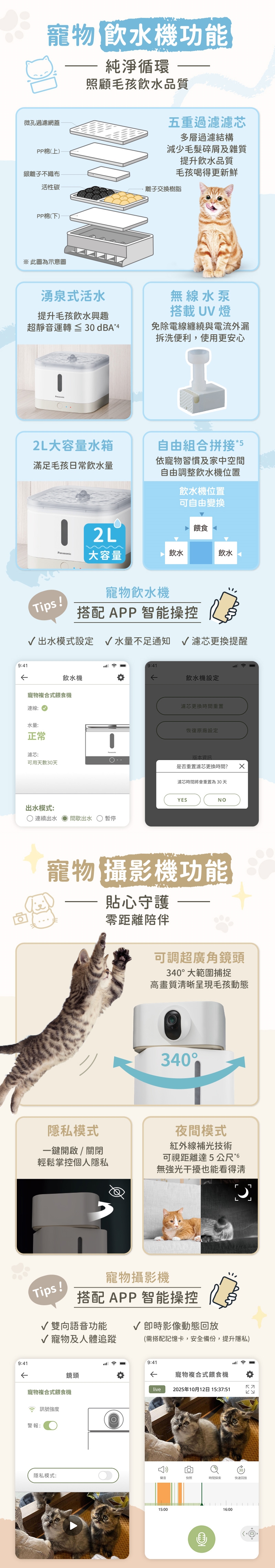 ◆Panasonic寵物機專屬APP,智能遠端餵食、出水模式設定、雙向語音溝通...等多項功能一指操作。