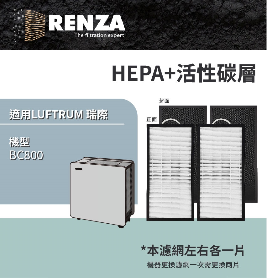 RENZA 高效HEPA+活性碳(2合1)濾網