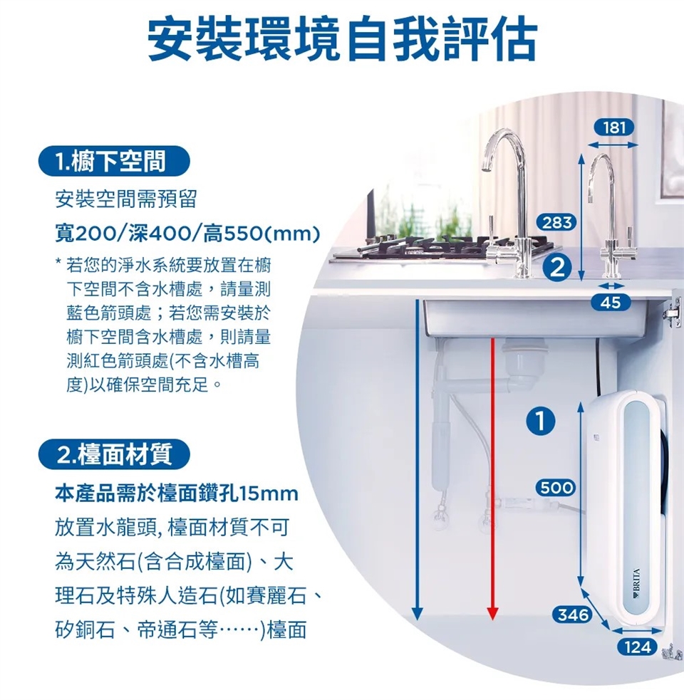 3. 安裝位置須距離水源1公尺內,電源(110V),如超過此標準安裝距離則需另外計費。