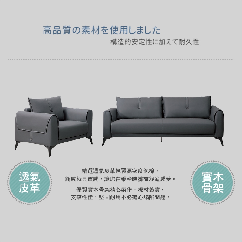 精選透氣皮革包覆高密度泡棉,厚實具質感,坐感舒適加倍!