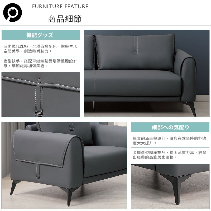 造型扶手搭配車縫線條,增添整體設計感,細節極具美感!