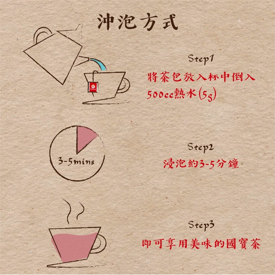 熱水500c.c沖泡五分鐘,即可享用美味的國寶茶