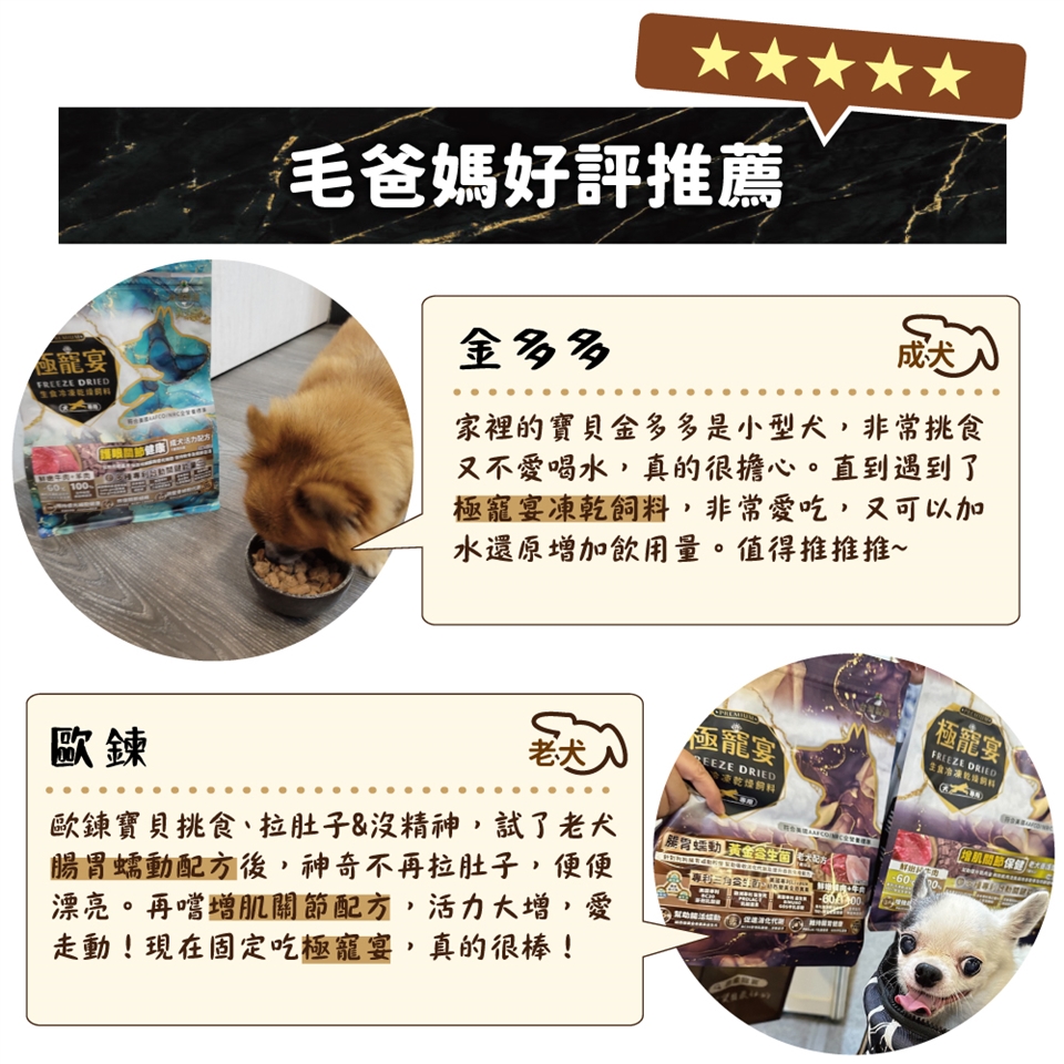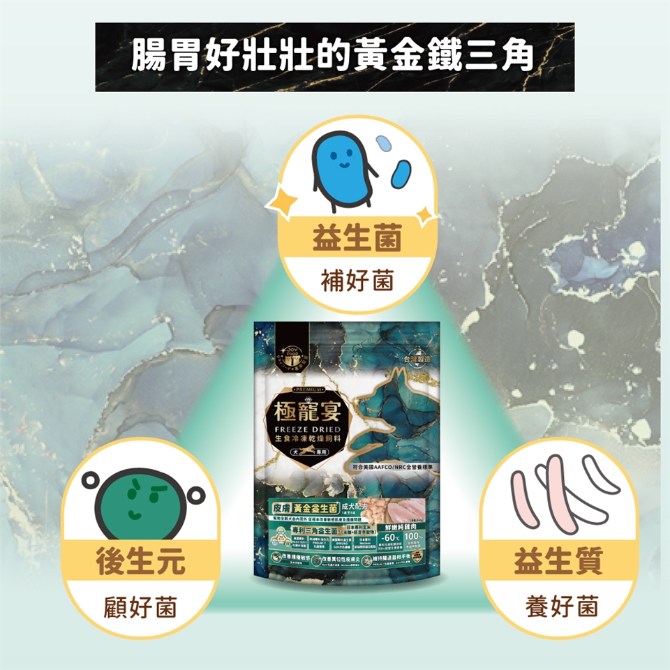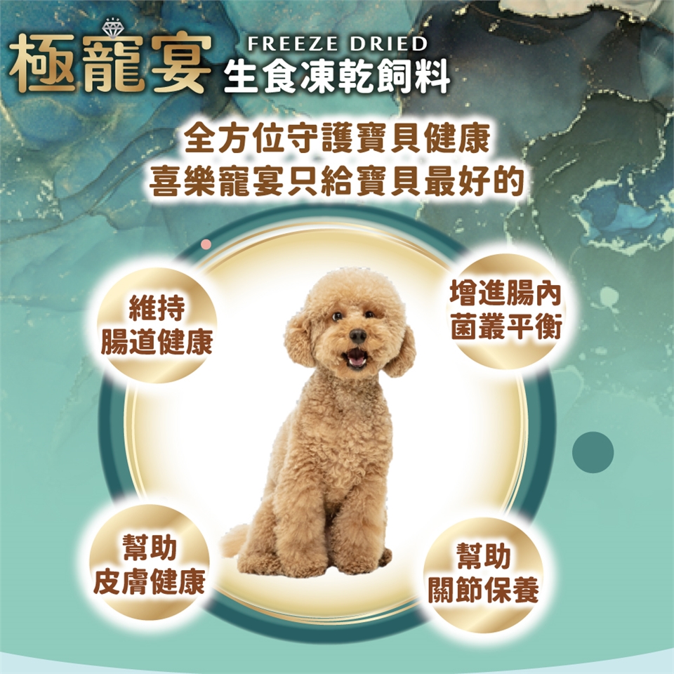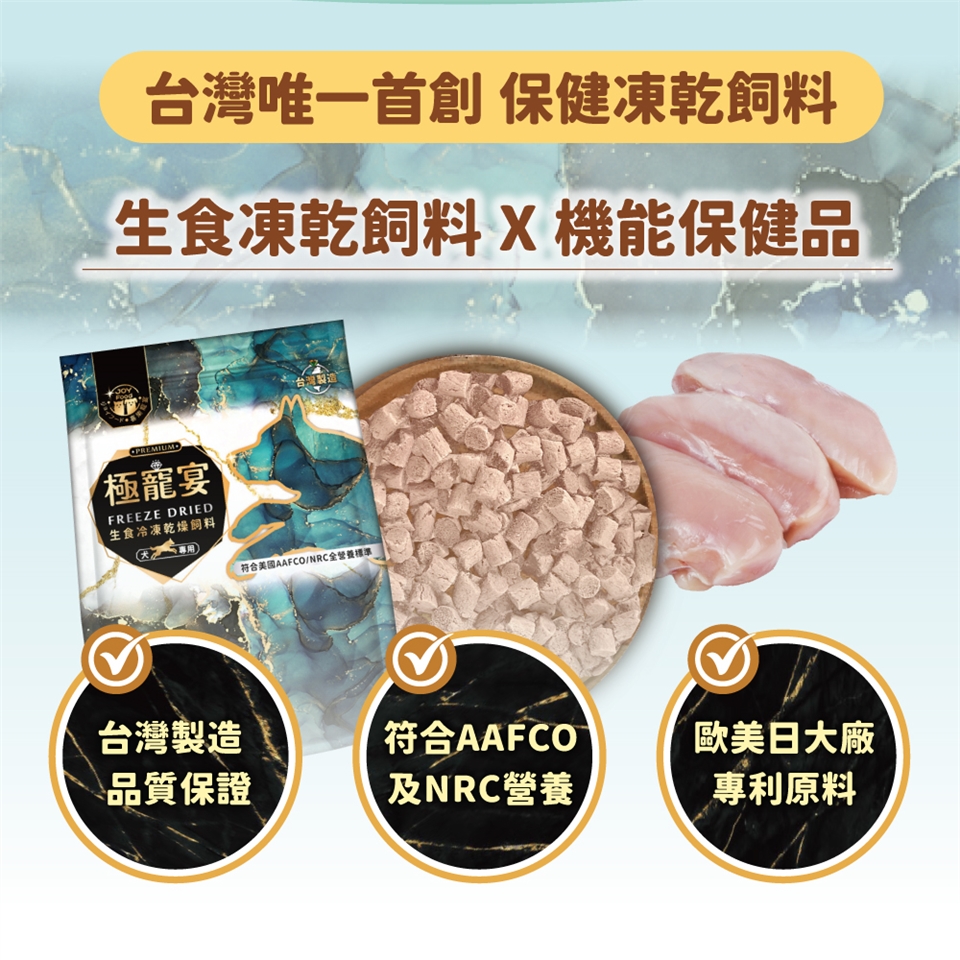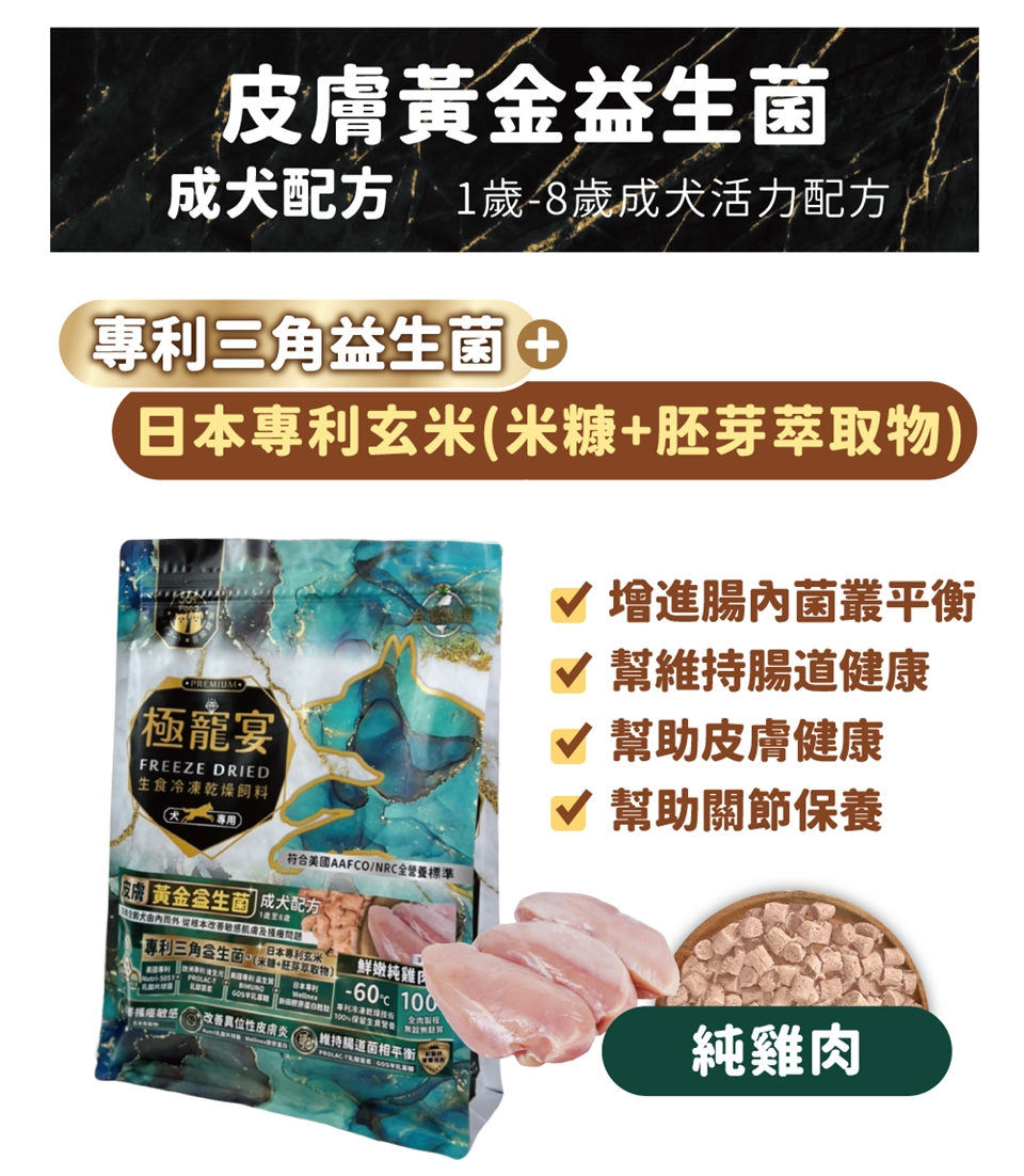 極寵宴 | 生食冷凍乾燥飼料 | 皮膚黃金益生菌 (1歲-8歲成犬活力配方-鮮嫩純雞肉)