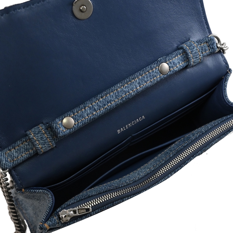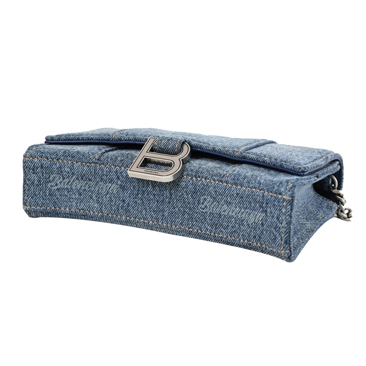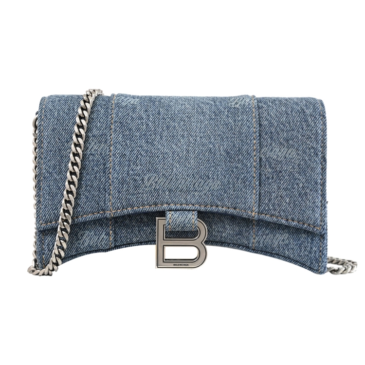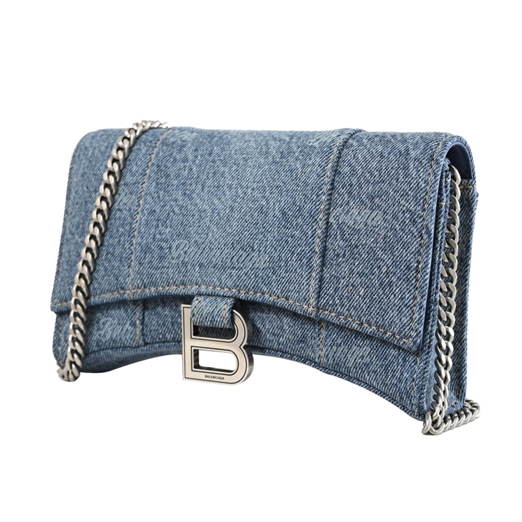 《BALENCIAGA》,深受不少國內外名人青睞的品牌,其魅力在台灣持續燃燒,是許多人踏入名牌世界的第一選擇,熱銷經典款再創新設計,獨特包型設計更顯高貴及優雅,專櫃經典Hourglass系列,採用新版牛仔帆布搭配經典B LOGO吊墜,翻蓋磁釦開口/內6卡片夾層+1拉鍊袋+2貼袋/外1貼袋供收納,內可放鑰匙、手機、卡片等小物,可斜背、側背或拆除背帶作手拿晚宴包使用,是近年最夯的小包系列。