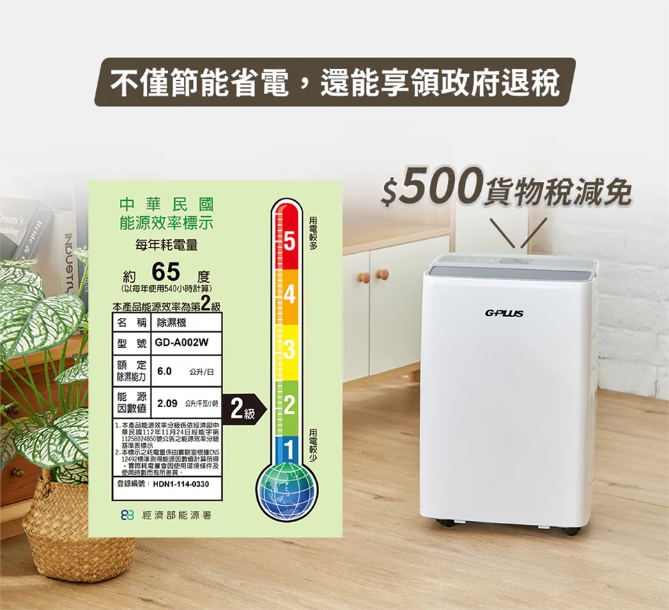 【G-PLUS 拓勤】6L智慧節能除濕機(GD-A002W)
