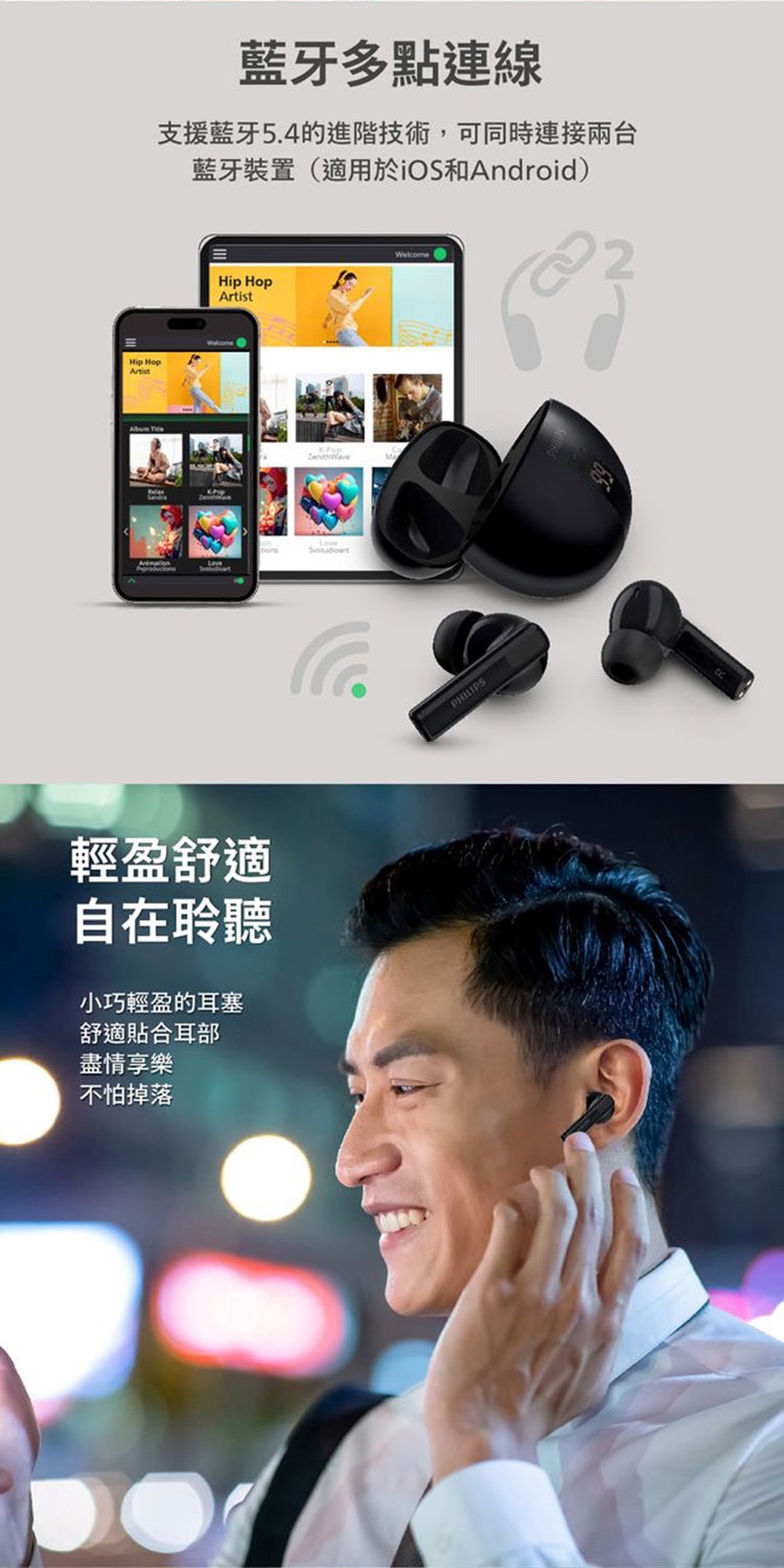 ◆ 藍牙5.4版本,可同時連接2台設備(適用於iOS和Android)