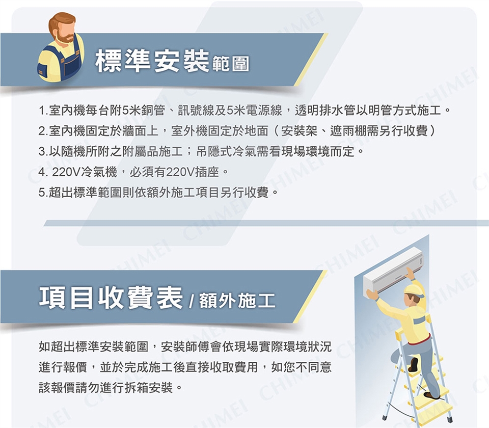 2.購買時請確認商品大小與裝機尺寸,師傅已到達指定地點並到府基本安裝時(已拆箱),倘若退貨原因是「尺寸大小不符導致無法搬運及安裝、並非新品不良」,必須收外箱整新費3,000元。