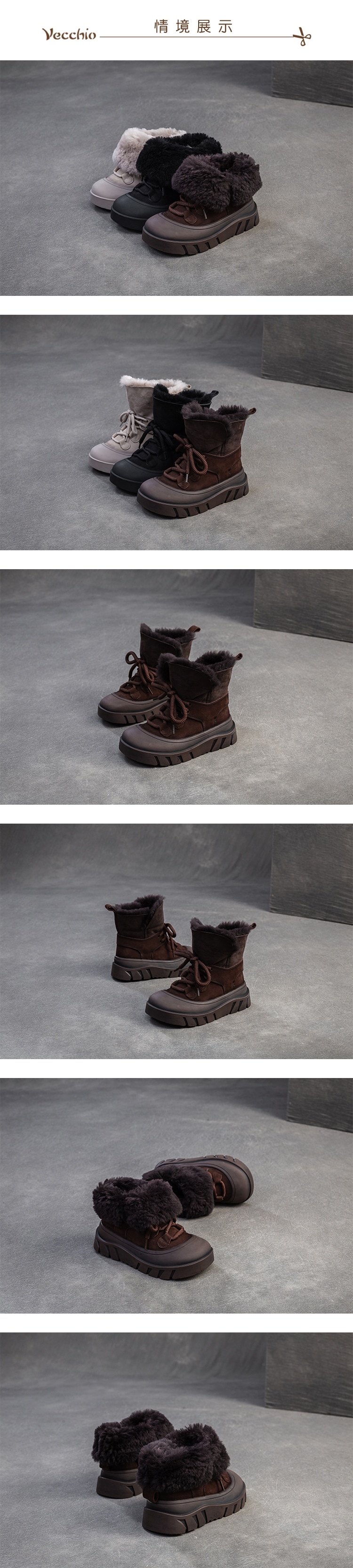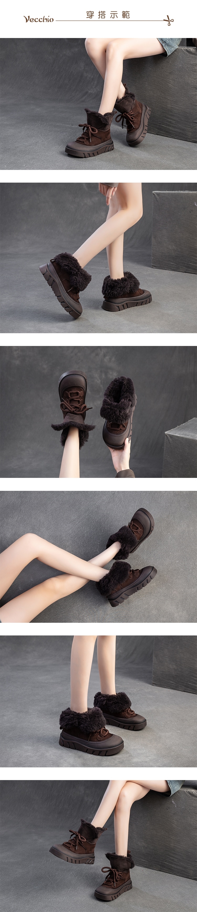 【VECCHIO】全真皮羊毛兩穿厚底雪靴/全真皮頭層牛皮翻領保暖羊毛裡兩穿法厚底雪靴 女鞋 咖