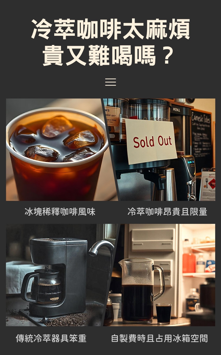 冷萃模式:縮短傳統冷萃8小時製程,20-30分鐘即可完成清爽冷萃咖啡。