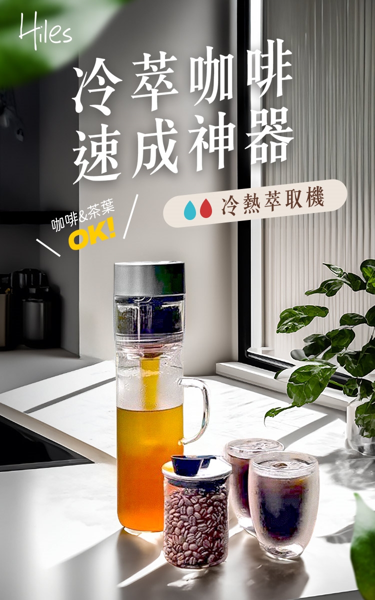 Hiles 真空虹吸式冷熱萃取機,重新定義咖啡沖泡的可能性,結合虹吸壺原理與冷萃技術,免火免插電,快速完成冷萃與熱萃咖啡。不受容器限制、輕巧便攜,讓您隨時隨地享受一杯高品質咖啡,不論是居家還是戶外,皆能輕鬆上手,為您的咖啡體驗注入更多樂趣。