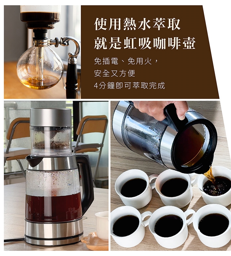 熱萃模式:搭配熱水,僅需4分鐘即可完成濃香熱咖啡。