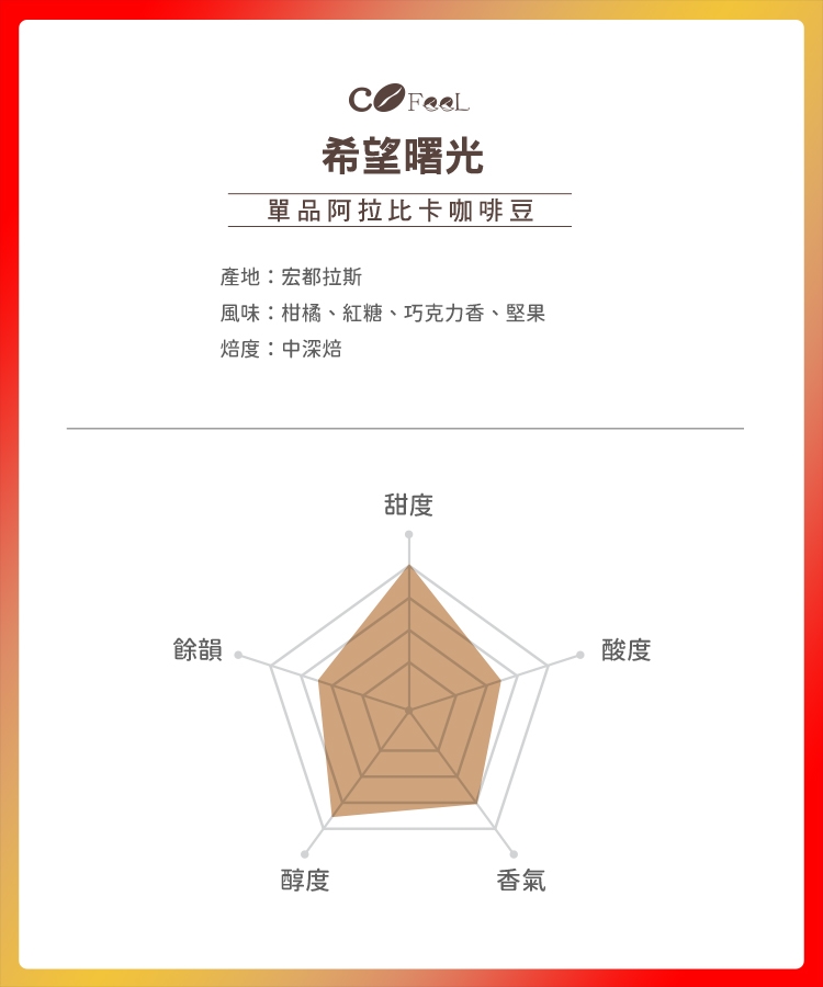 品名:CoFeel 凱飛現烘豆宏都拉斯希望曙光咖啡豆