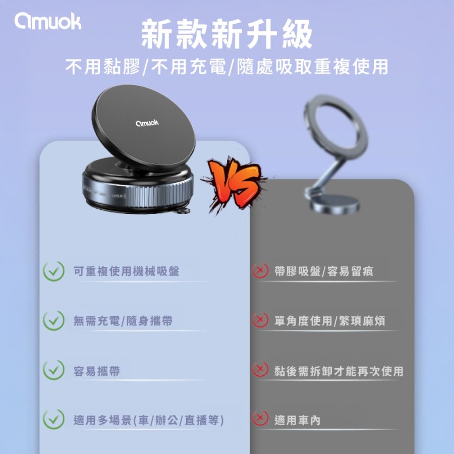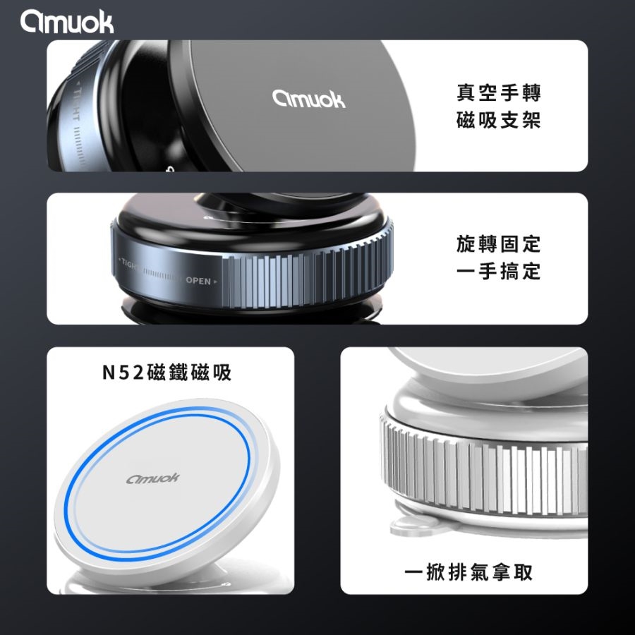 內容物:真空磁吸支架*1、清潔包*1、引磁貼片*1