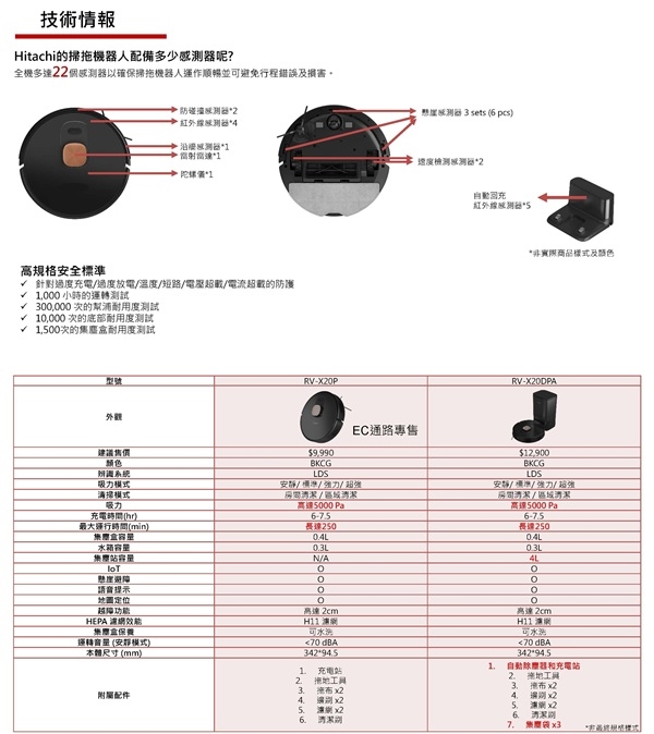 Hitachi 日立 自動集塵濕拖掃地機器人 RV-X20DPA
