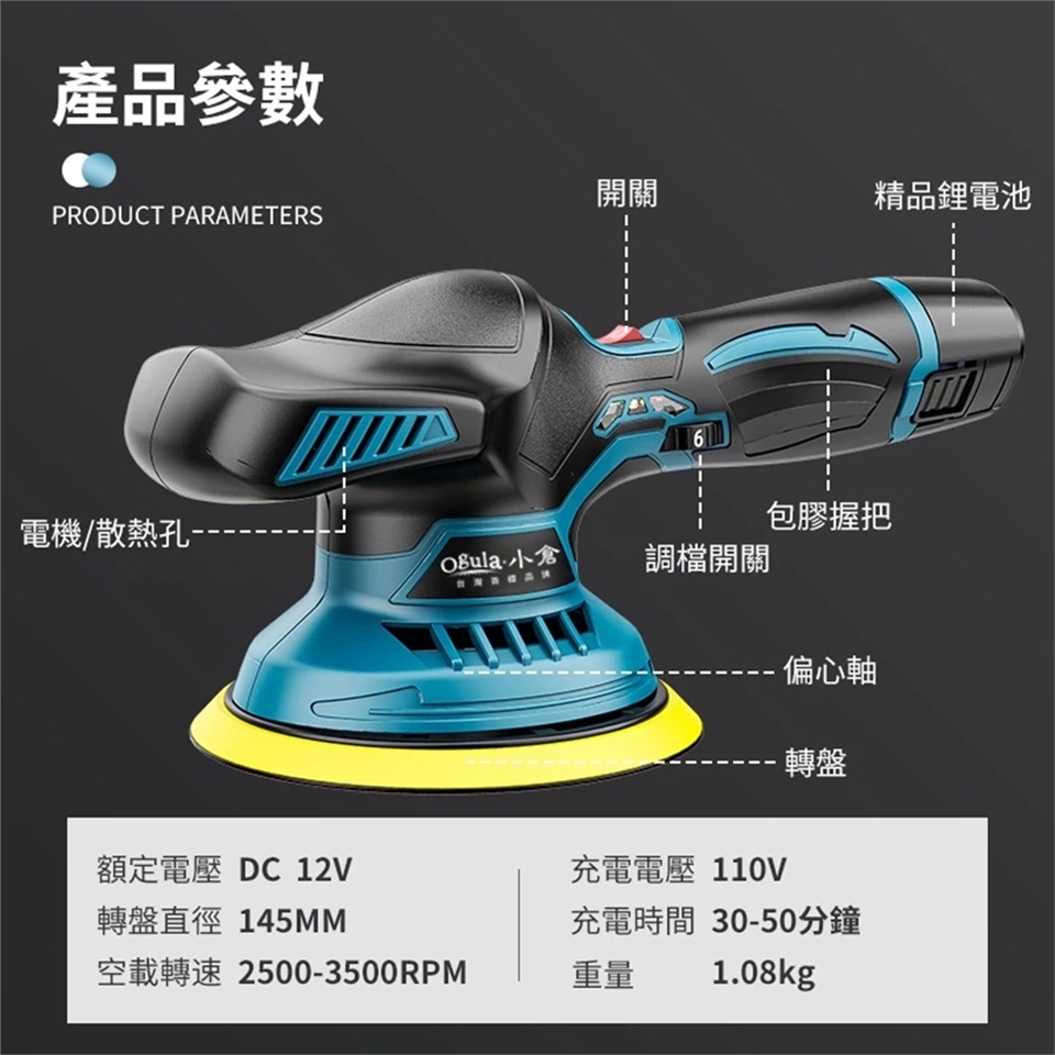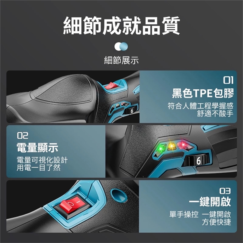 A品鋰電 銅芯電機 6檔調速 偏心軸正震拋 電量顯示 一鍵開啟